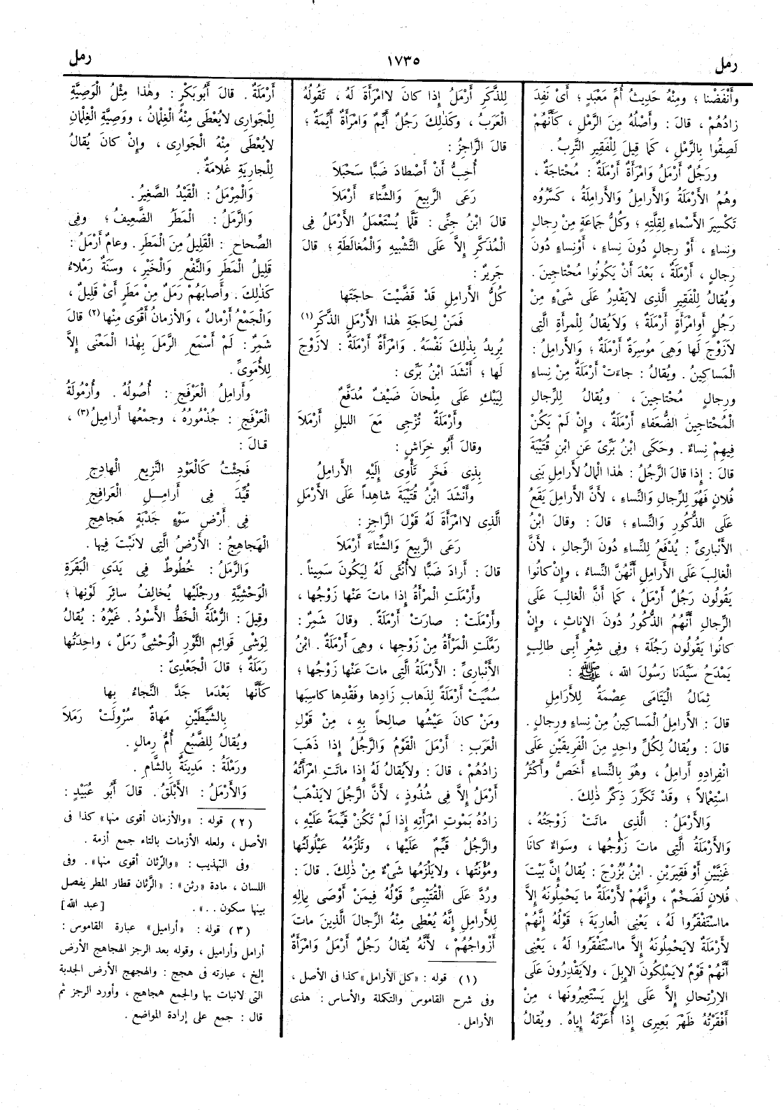 ( * قوله « والازمان أقوى منها » كذا في الأصل ولعله الازمات بالتاء جمع أزمة ) قال شمر لم أَسمع الرَّمَل بهذا المعنى إِلا للأُموي وأَرامِل العَرْفَج أُصوله وأُرْمُولة العرفج جُذْمُوره وجمعها أَراميل