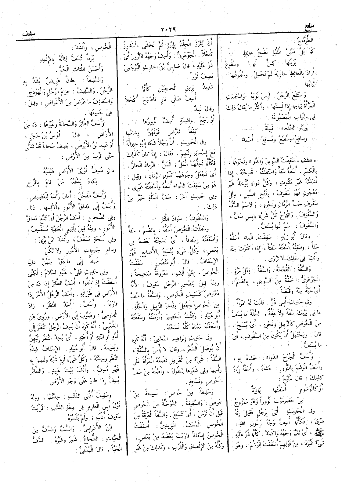 ( سفف ) سَفِفْتُ السَّويقَ والدَّواءَ ونحوهما بالكسر أَسَفُّه سَفّاً واسْتَفَفْتُه قَمِحْتُه إذا أَخذته غير ملتوت وكل دَواء يؤخذ غير معجون فهو سَفُوفٌ بفتح السين مثل سَفُوفِ حبّ الرُّمان ونحوه والاسم السُّفّةُ والسَّفُوفُ واقْتماحُ كل شيء يابس سَفٌّ والسَّفوفُ اسم لما يُسْتَفُّ وقال أَبو زيد سَفِفْتُ الماءَ أَسَفُّه سَفّاً وسَفِتُّه أَسْفَتُه سَفْتاً إذا أَكثرت منه وأَنت في ذلك لا تَرْوَى والسُّفَّةُ القُمْحةُ والسَّفَّةُ فِعْل مرة الجوهري سُفّة من السويق بالضم أَي حَبّة منه وقُبْضةٌ وفي حديث أَبي ذر قالت له امرأَة ما في بيتك سُفَّةٌ ولا هِفّةٌ السُّفَّة ما يُسَفُّ من الخُوص كالزَّبيل ونحوه أَي يُنْسَجُ قال ويحتمل أَن يكون من السَّفُوفِ أَي ما يُسْتَفُّ وأَسَفَّ الجُرْحَ الدّواءَ حَشاه به وأَسَفَّ الوَشْمَ بالنَّؤُورِ حَشاهُ وأَسَفَّه إياه كذلك قال مليح أَو كالْوشُومِ أَسَفَّتْها يَمانِيةٌ من حَضْرَمَوْتَ نُؤُوراً وهو مَمْزوجُ وفي الحديث أُتي برجل فقيل إنه سرق فكأَنما أُسِفَّ وجْهُ رسولِ اللّه صلى اللّه عليه وسلم أَي تغيّر وجْهُه واكْمَدَّ كأَنما ذُرَّ عليه شيء غيّره من قولهم أَسْفَفْتُ الوَشْم وهو أَن يُغْرَزَ الجلدُ بإبرة ثم تُحْشى المَغارِزُ كُحْلاً الجوهري وأُسِفَّ وجهُه النَّؤُورَ أَي ذُرّ عليه قال ضابئ بن الحرث البُرْجُمِي يصف ثوراً شَديدُ بَريقِ الحاجِبَيْنِ كأَنما أُسِفَّ صَلى نارٍ فأَصْبَحَ أَكْحَلا وقال لبيد أَو رَجْعُ واشِمة أُسِفَّ نَؤُورُها كِفَفاً تَعَرَّضَ فَوْقَهُنَّ وِشامُها وفي الحديث أَن رجلاً شكا إليه جِيرانَه مع إحْسانِه إليهم فقال إن كان كذلك فكأَنما تُسِفُّهم المَلُّ المَلِّ الرَّمادُ الحارُّ أَي تَجعل وجُوههم كلوْن الرماد وقيل هو من سَفِفْتُ الدواء أَسَفُّه وأَسْفَفْتُه غيري وفي حديث آخر سَفُّ المَلّةِ خير من ذلك والسَّفُوفُ سَوادُ اللَّثةِ وسَفَفْتُ الخُوصَ أَسُفُّه بالضم سَفّاً وأَسْفَفْتُه إسْفافاً أَي نسجته بعضَه في بعض وكلُّ شيء ينسج بالأَصابع فهو الإسْفاف قال أَبو منصور سَفَفْتُ الخوص بغير أَلف معروفة صحيحة ومنه قيل لتصدير الرَّحْل سَفِيف لأَنه مُعْتَرِض كسَفِيف الخوص والسُّفّة ما سُفَّ من الخوص وجعل مقدار الزَّبيل والجُلَّةِ أَبو عبيد رَمَلْتُ الحَصِير وأَرْمَلْتُه وسَفَفْتُه وأَسْفَفْتُه معناه كله نسجته وفي حديث إبراهيم النخعي أَنه كره أَن يُوصلَ الشعر وقال لا بأْس بالسُّفّة السُّفّة شيء من القَرامل تَضَعُه المرأَة على رأْسها وفي شعرها ليطول وأَصله من سَفِّ الخوص ونسْجِه وسَفِيفَةٌ من خوص نَسِيجةٌ من خوص والسفِيفة الدَّوْخَلَّةُ من الخوص قبل أَن تُرْمَل أَي تنسج والسُّفّةُ العَرَقةُ من الخوص المُسَفّ اليزيدي أَسْفَفْتُ الخوص إسْفافاً قارَبْتُ بعضه من بعض وكلُّه من الإلصاق والقُرب وكذلك من غير الخوص وأَنشد بَرَداً تُسَفُّ لِثاتُه بالإثْمِدِ