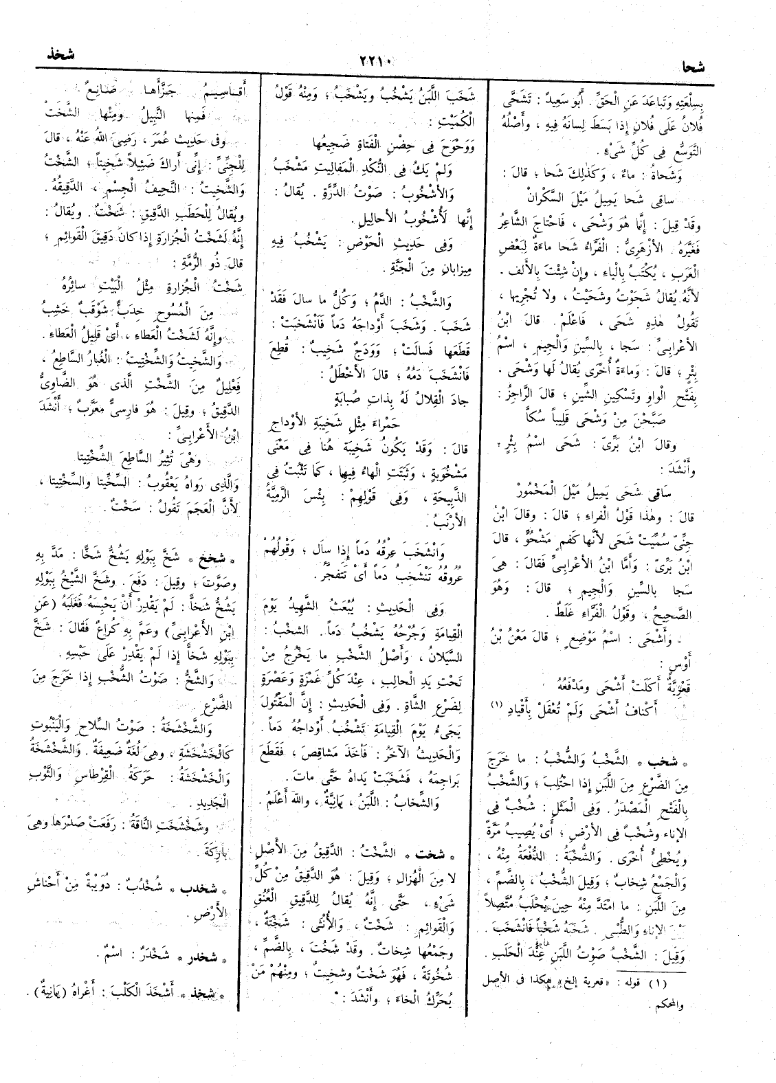 ( شخخ ) شَخَّ ببوله يَشُخُّ شَخّاً مَدّ به وصَوّت وقيل دَفَع وشَخَّ الشيخُ ببوله يَشُخُّ شَخّاً لم يقدر أَن يحبسه فغلبه عن ابن الأَعرابي وعَمَّ به كُراعٌ فقال شَخَّ ببوله شَخّاً إذا لم يقدر على حبسه والشَّخُّ صوت الشُّخْب إِذا خرج من الضَّرْع والشَّخْشَخة صوت السلاح واليَنْبُوتِ كالخَشْخَشة وهي لغة ضعيفة والشَّخْشَخة والخَشْخَشة حركة القِرْطاسِ والثوب الجديد وشَخْشَختِ الناقةُ رفعت صدرها وهي باركة ( شخدب ) شُخْدُبٌ دُوَيْبَّة من أَحْناشِ الأَرض ( شخدر ) شَخْدَرٌ اسم ( شخذ ) أَشْخَذَ الكلبَ أَغراه يمانية