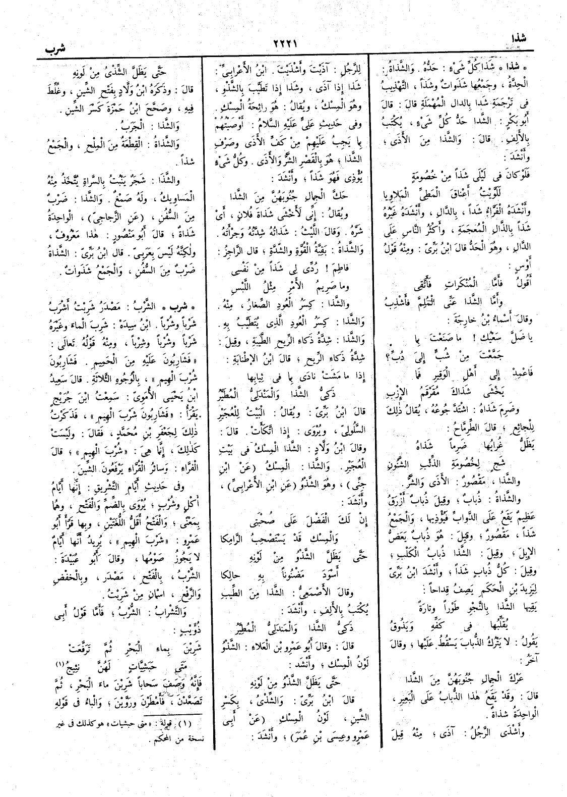 ( شذا ) شَذا كلِّ شيءٍ حَدُّه والشَّذاةُ الحِدَّةُ وجمعها شَذَواتٌ وشَذاً التهذيب في ترجمة شَدا بالدال المهملة قال قال أَبو بكر الشَّدا حَدُّ كلِّ شيء يكتب بالأَلف قال والشَّذا من الأَذى وأَنشد فلوْ كان في ليْلى شَذاً من خُصومَةٍ للوَّيْتُ أَعْناقَ المطِيِّ المَلاويا وأَنشده الفراء شَداً بالدال وأَنشده غيره شَذاً بالذال المعجمة وأَكثر الناس على الدال وهو الحدُّ قال ابن بري ومنه قول أَوس أَقولُ فأَمَّا المُنْكَراتِ فأَتَّقي وأَمَّا الشَّذا عَنِّي المُلِمَّ فأَشْذِبُ وقال أَسماء بن خارجة يا ضَلَّ سَعْيُكَ ما صَنَعْتَ بما جَمَّعْتَ من شُبٍّ إلى دُبِّ ؟ فاعْمِدْ إلى أَهْلِ الوَقِير فَما يَخْشى شَذاك مُقَرْقَمُ الإزْبِ وضَرِمَ شَذاهُ اشتَدَّ جُوعُه يقال ذلك للجائِعِ قال الطرِمَّاح يَظَلُّ غُرابُها ضَرِماً شَذاهُ شَجٍ لخُصومَة الذِّئْبِ الشَّنُونِ والشَّذا مقصورٌ الأَذى والشرُّ والشَّذاةُ ذُبابٌ وقيل ذبابٌ أَزْرقُ عظيمٌ يقع على الدواب فيُؤْذِيها والجَمع شَذاً مقصور وقيل هو ذُبابٌ يعضّ الإبلَ وقيل الشَّذا ذُبابُ الكلْب وقيل كل ذُبابٍ شَذاً وأَنشد ابن بري ليزيد بن الحكم يصف قداحاً يقيها الشَّذا بالنَّجوِ طَوراً وتارةً يُقَلِّبها فيكفِّه ويَذوقُ يقول لا يترك الذباب يسقُطُ عليها وقال آخر عَرْكَ الجِمالِ جُنُوبَهنَّ من الشَّذا قال وقد يقع هذا الذُّبابُ على البعير الواحدة شذاةٌ وأَشْذى الرجلُ آذى ومنه قيل للرجل آذيْتَ وأَشْذيْتَ ابن الأَعرابي شَذا إذا آذى وشَذا إذا تطيَّبَ بالشَّذْوِ وهو المِسْكُ ويقال وهو رائحة المسك وفي حديث علي عليه السلام أَوْصَيْتُهم بما يجب عليهم من كفِّ الأَذى وصرف الشَّذا هو بالقصر الشَّرُّ والأَذى وكل شيءٍ يُؤْذي فهو شَذاً وأَنشد حَكَّ الجِمال جُنوبَهنَّ من الشَّذا ويقال إني لأَخشى شَذاة فلان أَي شَرَّه وقال الليث شَذاتهُ شدَّتهُ وجَرْأَته والشَّذاةُ بقية القوَّة والشِّدَّة قال الراجز فاطِمَ رُدِّي لي شَذاً من نَفْسي وما صَريمُ الأَمر مثلُ اللَّبْسِ والشَّذا كِسَر العود الصغار منه والشَّذا كِسَر العود الذي يُتَطيَّب به والشَّذا شِدَّةُ ذكاءِ الريح الطَّيِّبة وقيل شِدَّة ذكاءِ الريح قال ابن الإطْنابة إذا ما مَشَتْ نادى بما في ثِيابها ذكيُّ الشَّذا والمَنْدَليُّ المُطَيَّرُ قال ابن بري ويقال البيتُ للعُجَير السَّلولي ويروى إذا اتَّكأَتْ قال وقال ابن ولاَّد الشَّذا المِسك في بيت العُجَير والشَّذا المِسْك عن ابن جني وهو الشَّذْوُ عن ابن الأَعرابي وأَنشد إن لك الفَضلَ على صُحْبَتي والمِسكُ قد يَسْتَصحِبُ الرَّامِكا حتى يظلَّ الشَّذْوُ من لوْنهِ أَسْودَ مَضْنوناً به حالِكا وقال الأَصمعي الشَّذا من الطيب يكتَبُ بالأَلف وأَنشد ذكيُّ الشَّذا والمندليُّ المطيَّرُ قال وقال أَبو عمرو بن العلاء الشَّذْوُ لونُ المِسك وأَنشد حتى يظلِّ الشَّذْوُْ من لونهِ قال ابن بري والشِّذْيُ بكسر الشين لونُ المسك عن أَبي عمرو وعيسى بن عمر وأَنشد حتى يظلَّ الشِّذْيُ من لوْنهِ قال وذكره ابن ولاَّدٍ بفتح الشين وغُلِّط فيه وصحح ابن حمزة كسر الشين والشَّذا الجرب والشَّذاةُ القطْعة من الملحِ والجمع شَذاً والشَّذا شجرٌ ينبُت بالسَّراةِ يُتَّخذ منه المَساوِيك وله صمغٌ والشَّذا ضربٌ من السُّفن عن الزجاجي الواحدة شَذاةٌ قال أَبو منصور هذا معروف ولكنه ليس بعربي قال ابن بري الشَّذاةُ ضرْبٌ من السُّفُن والجمع شَذَواتٌ