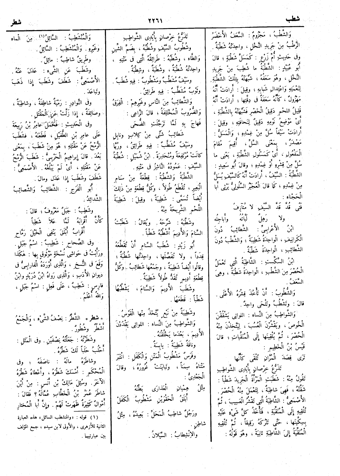 ورجل شاطِب المَحَلِّ بعيدُه مثل شاطِنٍ والانْشِطابُ السَّيَلانُ والمُنْشَطِبُ السائِلُ ( 1 )