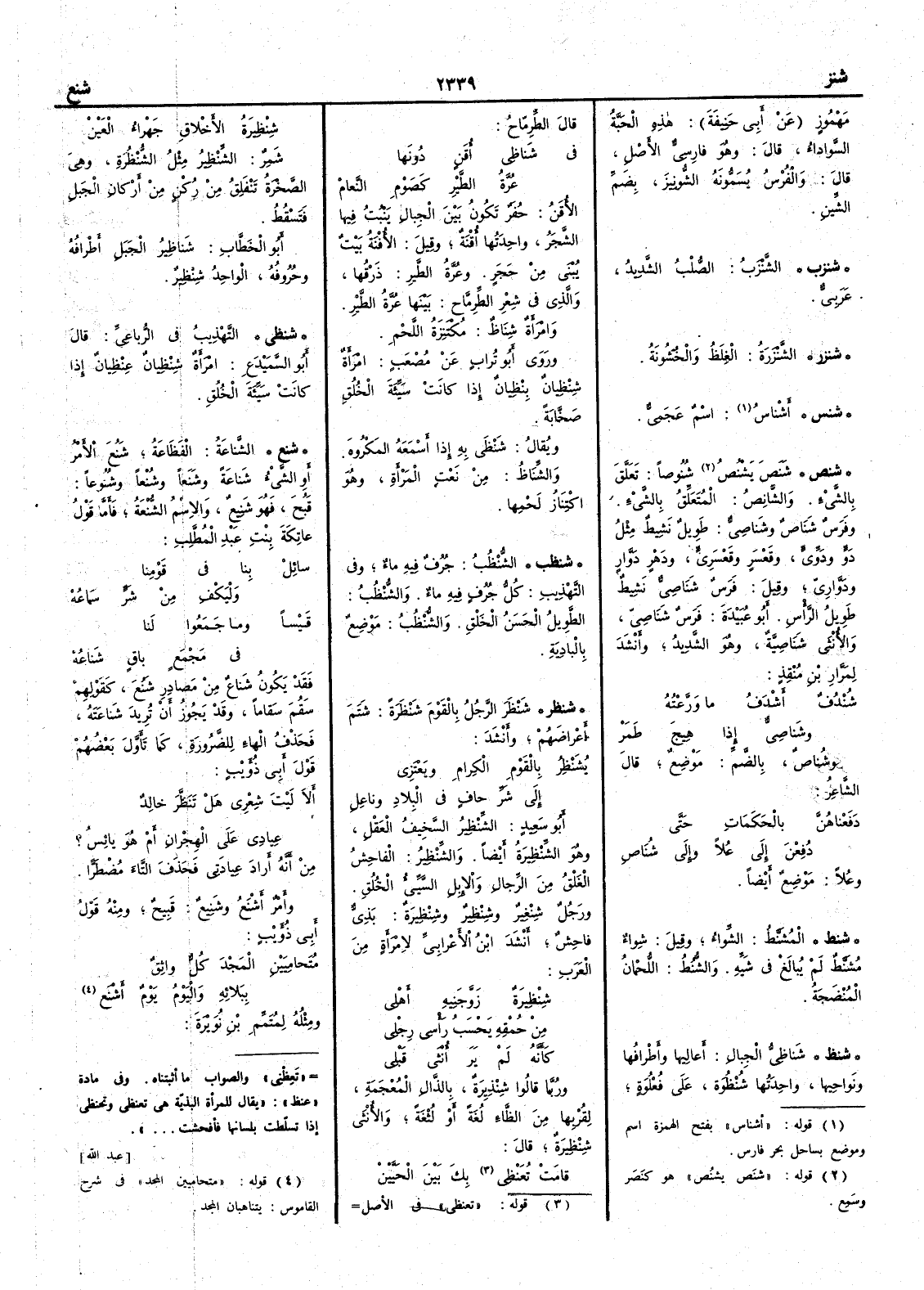 ( شنزر ) الشَّنْزَرَةُ الغِلَظ والخُشُونَةُ ( شنس ) أَشْناسُ اسم عَجَمِيٌّ