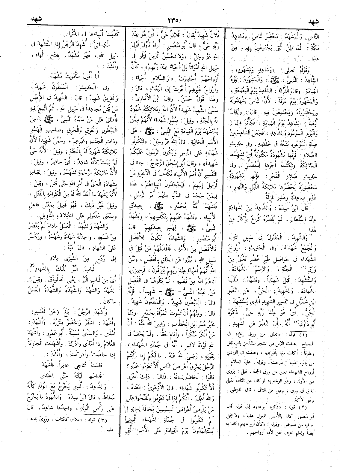 ( * قوله « تعلق من ورق إلخ » في المصباح علقت الإبل من الشجر علقاً من باب قتل وعلوقاً أكلت منها بأفواهها وعلقت في الوادي من باب تعب سرحت وقوله عليه السلام أرواح الشهداء تعلق من ورق الجنة قيل يروى من الأَول وهو الوجه اذ لو كان من الثاني لقيل تعلق في ورق وقيل من الثاني قال القرطبي وهو الأكثر ) الجنة والإسم الشهادة واسْتُشْهِدَ قُتِلَ شهِيداً وتَشَهَّدَ طلب الشهادة والشَّهِيدُ الحيُّ عن النصر بن شميل في تفسير الشهيد الذي يُسْتَشْهَدُ الحيّ أَي هو عند ربه حيّ ذكره أَبو داود