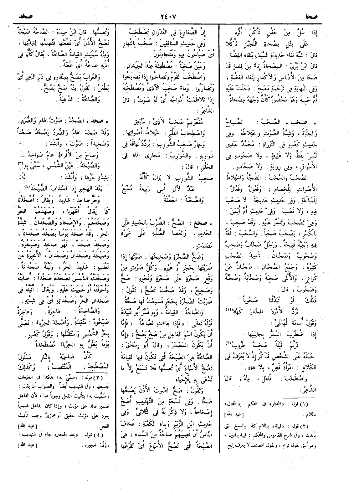 والصَّخْبَة العَطْفة ( صخخ ) الصخُّ الضرب بالحديد على الحديد والعصا الصلبة على شيءٍ مُصمتٍ وَصَخُّ الصخرة وَصَخِيخُها صوتُها إِذا ضربتها بحجر أَو غيره وكلُّ صوت من وقع صخرة على صخرة ونحوه صَخٌّ وصَخيخٌ وقد صَخَّت تصخُّ تقول ضربت الصخرة بحجر فسمعت لها صَخَّةً والصاخَّةُ القيامة وبه فسر أَبو عبيدَة قوله تعالى فَإِذا جاءَت الصاخة فإِما أَن يكون اسمَ الفاعل من صخ يصخ وإِما أَن يكون المصدَر وقال أَبو إِسحاق الصاخة هي الصيحة التي تكون فيها القيامة تصُخُّ الأَسماعَ أَي تُصِمُّها فلا تسمع إِلاَّ ما تدعى به للإِحياء وتقول صخَّ الصوتُ الأُذُنَ يَصُخُّها صخّاً وفي نسخة من التهذيب أَصخ إِصخاخاً ولا ذكر له في الثلاثي وفي حديث ابن الزبير وبناء الكعبة فخاف الناس أَن يصيبهم صاخة من السماء هي الصيحة التي تَصُخُّ الأَسماع أَي تقرعها وتصمها قال ابن سيده الصاخة صيحة تصخ الأُذن أَي تطعنها فتصمها لشدتها ومنه سميت القيامة الصاخة يقال كأَنها في أُذنه صاخة أَي طعنة والغرابُ يصُخُّ بمنقاره في دَبَرِ البعير أَي يطعن تقول منه صخ يصخ والصاخة الداهية