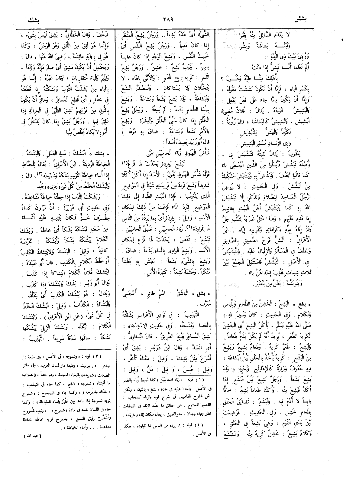 ( * قوله بما يرده من الناس لها للواردة هكذا في الأَصل ) زناء الحامِيين ضَيِّق الحاميين تَبْشَع تُغَصّ يحدث لها فزع لمكان الأَسد وبَشِع الوادي بالماء بَشَعاً ضاق وَبَشِع بالشيء بشَعاً بطَش به بَطْشاً مُنْكراً وخشبة بَشِعة كثيرة الأُبَنِ
