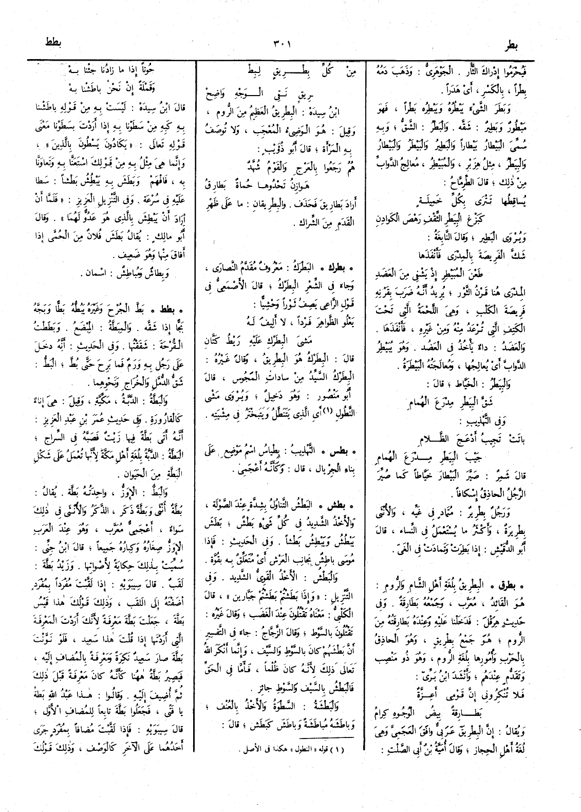 ( بطس ) التهذيب بِطياسُ اسم موضع على بناء الجِرْيال قال وكأَنه أَعجمي