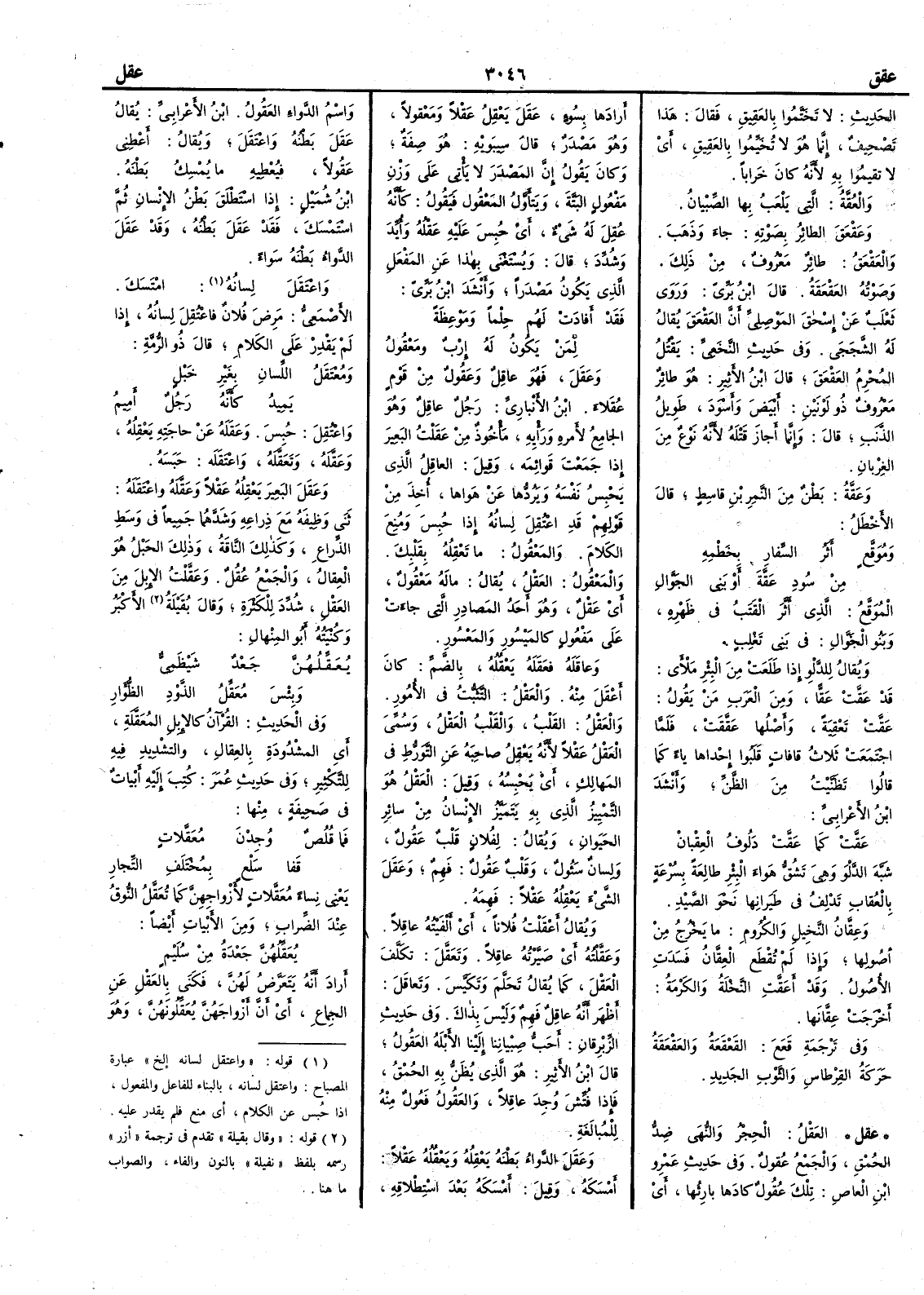 ( عقل ) العَقْلُ الحِجْر والنُّهى ضِدُّ الحُمْق والجمع عُقولٌ وفي حديث عمرو بن العاص تِلْك عُقولٌ كادَها بارِئُها أَي أَرادها بسُوءٍ عَقَلَ يَعْقِل عَقْلاً ومَعْقُولاً وهو مصدر قال سيبويه هو صفة وكان يقول إِن المصدر لا يأْتي على وزن مفعول البَتَّةَ ويَتأَوَّل المَعْقُول فيقول كأَنه عُقِلَ له شيءٌ أَي حُبسَ عليه عَقْلُه وأُيِّد وشُدِّد قال ويُسْتَغْنى بهذا عن المَفْعَل الذي يكون مصدراً وأَنشد ابن بري فَقَدْ أَفادَتْ لَهُم حِلْماً ومَوْعِظَةً لِمَنْ يَكُون له إِرْبٌ ومَعْقول وعَقَل فهو عاقِلٌ وعَقُولٌ من قوم عُقَلاء ابن الأَنباري رَجُل عاقِلٌ وهو الجامع لأَمره ورَأْيه مأْخوذ من عَقَلْتُ البَعيرَ إِذا جَمَعْتَ قوائمه وقيل العاقِلُ الذي يَحْبِس نفسه ويَرُدُّها عن هَواها أُخِذَ من قولهم قد اعْتُقِل لِسانُه إِذا حُبِسَ ومُنِع الكلامَ والمَعْقُول ما تَعْقِله بقلبك والمَعْقُول العَقْلُ يقال ما لَهُ مَعْقُولٌ أَي عَقْلٌ وهو أَحد المصادر التي جاءت على مفعول كالمَيْسور والمَعْسُور وعاقَلَهُ فعَقَلَه يَعْقُلُه بالضم كان أَعْقَلَ منه والعَقْلُ التَّثَبُّت في الأُمور والعَقْلُ القَلْبُ والقَلْبُ العَقْلُ وسُمِّي العَقْلُ عَقْلاً لأَنه يَعْقِل صاحبَه عن التَّوَرُّط في المَهالِك أَي يَحْبِسه وقيل العَقْلُ هو التمييز الذي به يتميز الإِنسان من سائر الحيوان ويقال لِفُلان قَلْبٌ عَقُول ولِسانٌ سَؤُول وقَلْبٌ عَقُولٌ فَهِمٌ وعَقَلَ الشيءَ يَعْقِلُه عَقْلاً فَهِمه ويقال أَعْقَلْتُ فلاناً أَي أَلْفَيْته عاقِلاً وعَقَّلْتُه أَي صَيَّرته عاقِلاً وتَعَقَّل تكَلَّف العَقْلَ كما يقال تَحَلَّم وتَكَيَّس وتَعاقَل أَظْهَر أَنه عاقِلٌ فَهِمٌ وليس بذاك وفي حديث الزِّبْرِقانِ أَحَبُّ صِبْيانِنا إِلينا الأَبْلَهُ العَقُول قال ابن الأَثير هو الذي يُظَنُّ به الحُمْقُ فإِذا فُتِّش وُجِد عاقلاً والعَقُول فَعُولٌ منه للمبالغة وعَقَلَ الدواءُ بَطْنَه يَعْقِلُه ويَعْقُلُه عَقْلاً أَمْسَكَه وقيل أَمسكه بعد اسْتِطْلاقِهِ واسْمُ الدواء العَقُولُ ابن الأَعرابي يقال عَقَلَ بطنُه واعْتَقَلَ ويقال أَعْطِيني عَقُولاً فيُعْطِيه ما يُمْسِك بطنَه ابن شميل إِذا اسْتَطْلَقَ بطنُ الإِنسان ثم اسْتَمْسَك فقد عَقَلَ بطنُه وقد عَقَلَ الدواءُ بطنَه سواءً واعْتَقَلَ لِسانُه