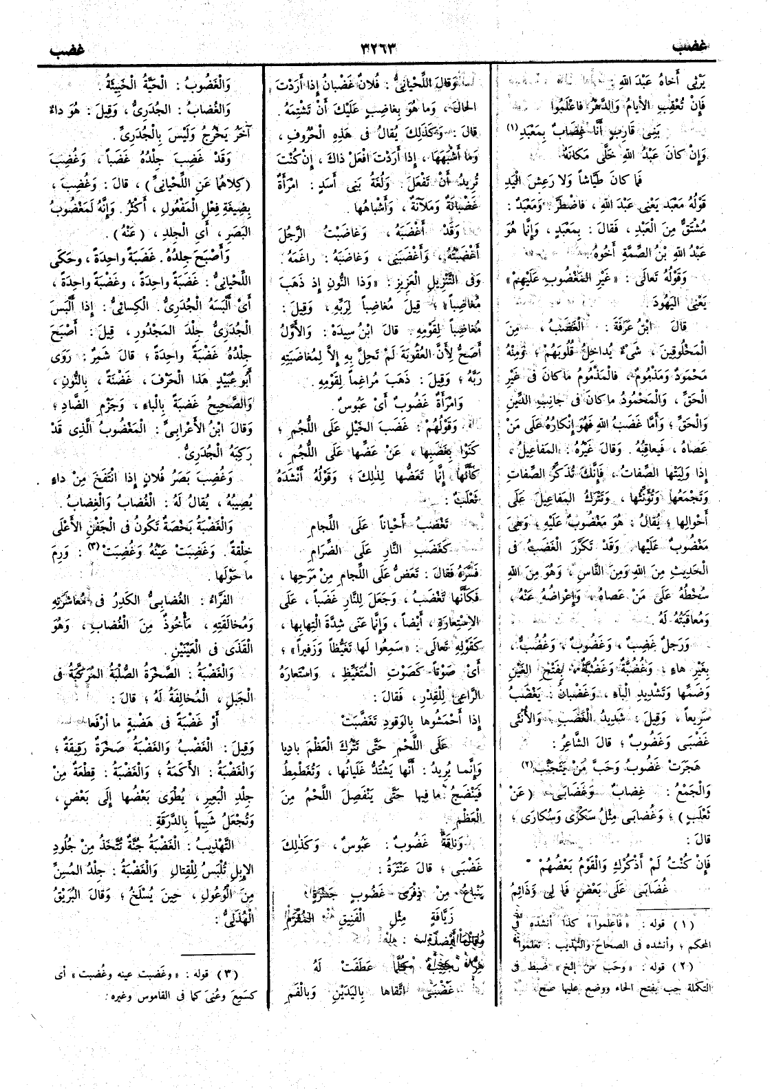فسره فقال تَعَضُّ على اللِّجامِ من مَرَحِها فكأَنها تَغْضَبُ وجَعَلَ للنار غَضَباً على الاستعارة أَيضاً وإِنما عَنى شِدَّةَ التهابها كقوله تعالى سَمِعُوا لها تَغَيُّظاً وزَفيراً أَي صَوْتاً كصَوْتِ المُتَغَيِّظ واستعاره الراعي للقِدْرِ فقال