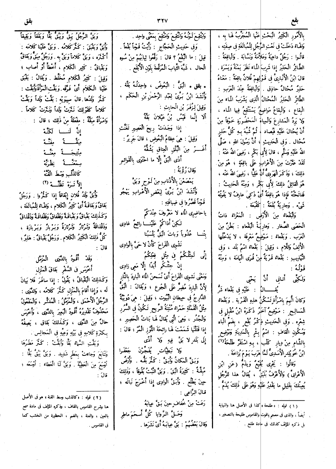 ( * قوله « طلحة » كذا في الأصل هنا والنهاية أيضاً والذي في معجم ياقوت والقاموس طليحة بالتصغير بل ذكره المؤلف كذلك في مادة طلح ) بن خُوَيْلِد الأَسدِيُّ لما هرَبَ يومَ بُزاخةَ وقالوا يَجْرِي بُقَيْعٌ ويُذَمُّ عن ابن الأَعرابي والأَعرف بُلَيْق يقال هذا للرجل يُعِينُك بقليل ما يقدر عليه وهو على ذلك يُذَمُّ وابْتُقِعُ لونُه وانْتُقِع وامْتُقِع بمعنىً واحد وفي حديث الحَجاج رأَيت قوماً بُقْعاً قيل ما البُقْع ؟ قال رقَّعُوا ثيابهم من سوء الحال شبه الثياب المُرَقَّعة بلَوْن الأَبقع