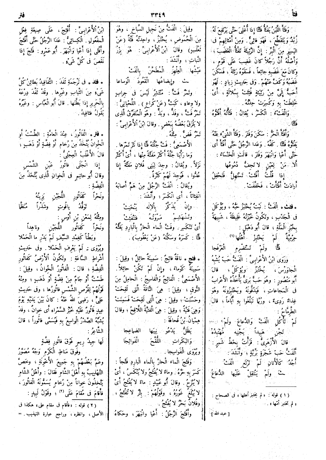 ( فثج ) ناقةٌ فاثِجٌ سمينة حائل وقيل سمينة كَوْماء وإِن لم تكن حائلاً الأَصمعي الفاثِجُ والفاسِجُ الحامل من النُّوق وقيل هي الناقة التي لَقِحَت وحَسُنت وقيل هي التي لَقِحَت فسمنت وهي فتيَّة وقيل هي الفتية اللاَّقِح وقال هميان بن قحافة يَظَلُّ يَدْعُو نِيبَها الضَّماعِجا والبَكَراتِ اللُّقَّحَ الفَواثِجَا ويروى الفَواسِجا وفَثَجَ الماءَ الحارَّ بالماء البارد فَثْجاً كَسَر به حَرَّه وماءٌ لا يُفْثَجُ ولا يُنْكَسُ أَي لا يُنزَح وقال أَبو عبيد ماء لا يُفْثَجُ أَي لا يُبْلَغ غَوْره وقولهم بئر لا تُفْثَجُ وفلان بحر لا يُفْثَجُ وأَفْثَجَ الرجل أَعْيا وانْبَهَر وحكاه ابن الأَعرابي أُفْثِج على صيغة فعل المفعول الكسائي غَدَا الرجلُ حتى أَفْثَجَ وأَفْثَى إِذا أَعْيا وانْبَهَرَ أَبو عمرو فَثَجَ إِذا نَقَصَ في كل شيء( فثد ) في ترجمة ثفد الثَّفافِيدُ بِطائِنُ كلِّ شيء من الثياب وغيرها وقد ثَفَّدَ دِرْعَه بالحرير إِذا بَطَّنَها قال أَبو العباس وغيره يقول فَثافِيدُ