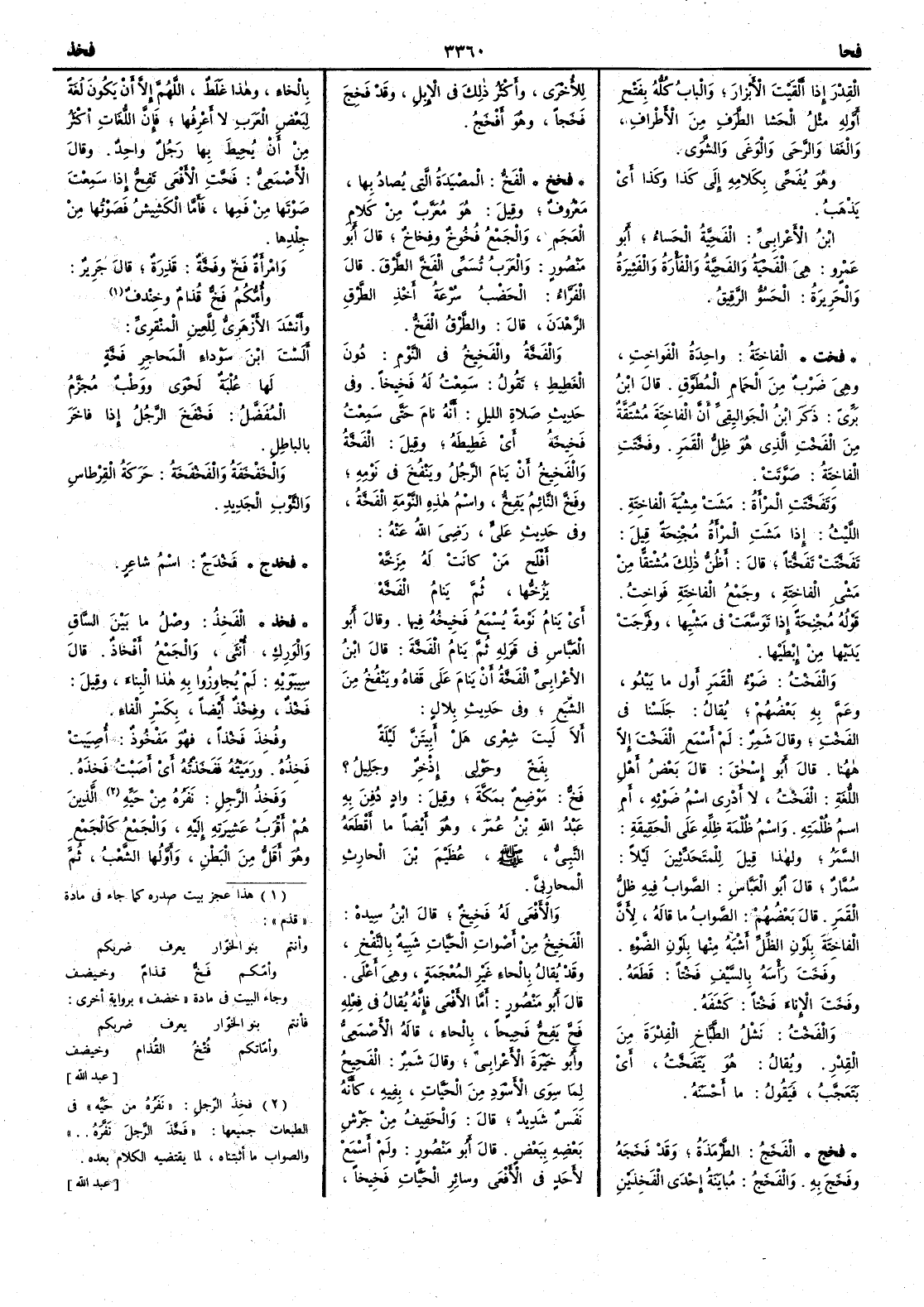 ( فخخ ) الفَخُّ المصْيَدَة التي يصاد بها معروف وقيل هو معرّب من كلام العجم والجمع فُخوخ وفِخاخ قال أَبو منصور والعرب تسمي الفَخَّ الطَّرَقَ قال الفراء الحَضْبُ سرعة أَخذ الطَّرَق الرَّهْدَنَ قال والطرق الفخ والفَخَّة والفَخُّ في النوم دون الغطيط تقول سمعت له فَخيخاً وفي حديث صلاة الليل أَنه نام حتى سمعت فَخيخَه أَي غطيطه وقيل الفَخَّةُ والفَخُّ أَن ينام الرجل وينفخ في نومه وفَخَّ النائمُ يَفِخُّ واسم هذه النومة الفَخَّة وفي حديث علي رضي الله عنه أَفْلَح مَن كانت له مِزَخَّهْ يَزْخُّها ثم يَنامُ الفَخَّهْ أَي ينام نومة يسمع فخيخه فيها وقال أَبو العباس في قوله ثم ينام الفخة قال ابن الأَعرابي الفخة أَن ينام على قفاه وينفخ من الشبع وفي حديث بلال أَلا ليتَ شِعري هل أَبيتَنَّ لَيلَةً بفَخٍّ وحَوْلي إِذْخِرٌ وجَلِيلُ ؟