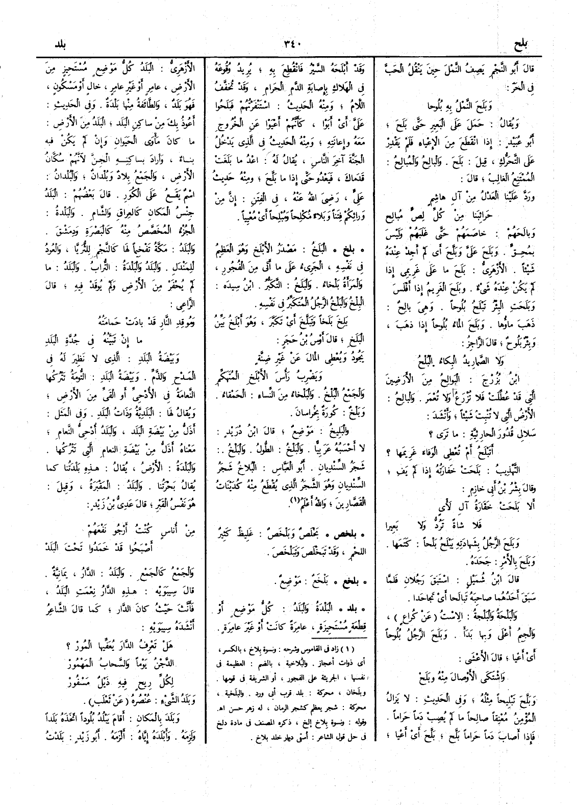 قال أَبو النجم يصف النمل حين يَنْقُلُ الحَبَّ في الحَرّ وبَلَح النملُ به بُلُوحا ويقال حمل على البعير حتى بَلَح أَبو عبيد إِذا انقطع من الإِعياء فلم يقدر على التحرُّك قيل بَلَحَ والبالِحُ والمُبالِحُ الممتنع الغالبُ قال ورَدَّ علينا العَدْلُ من آلِ هاشِمٍ حَرائِبَنا من كلِّ لِصٍّ مُبالِح وبالَحَهُمْ خاصمهم حتى غلبهم وليس بِمُحِقٍّ وبَلَحَ عليَّ وبَلَّحَ أَي لم أَجد عنده شيئاً الأَزهري بَلَح ما على غَريمي إِذا لم يكن عنده شيء وبَلَحَ الغَريمُ إِذا أَفلس وبَلَحَتِ البئر تَبْلَحُ بُلوحاً وهي بالِحٌ ذهب ماؤُها وبَلَحَ الماءُ بُلُوحاً إِذا ذهب وبئر بَلُوحٌ قال الراجز ولا الصَّمارِيدُ البِكاءُ البُلْحُ ابن بُزُرجٍ البَوالِحُ من الأَرَضين التي قد عُطِّلَتْ فلا تُزْرَعُ ولا تُعْمَر والبالِحُ الأَرض التي لا تنبت شيئاً وأَنشد سَلا لي قُدُورَ الحارِثِيَّةِ ما تَرَى ؟ أَتَبْلَحُ أَم تُعْطِي الوَفاءَ غَرِيمَها ؟ التهذيب بَلَحَتْ خَفارَتُه إِذا لم يفِ وقال بِشْرُ ابن أَبي خازم أَلا بَلَحَتْ خَفَارَةُ آلِ لأْيٍ فلا شاةً تَرُدُّ ولا بَعيرا وبَلَح الرجلُ بشهادته يَبْلَح بَلْحاً كتمها وبَلَحَ بالأَمر جَحَده قال ابن شميل اسْتَبق رجلان فلما سبق أَحدهما صاحبه تَبالَحا أَي تجاحدا والبَلْحةُ والبَلْجة الاست عن كراع والجيم أَعلى وبها بدأَ وبَلَحَ الرجل بُلُوحاً أَي أَعيا قال الأَعشى واشْتَكى الأَوْصالَ منه وبَلَحْ وبَلَّحَ تَبْليحاً مثله وفي الحديث لا يزال المؤمن مُعْنِقاً صالحاً ما لم يصب دماً حراماً فإِذا أَصاب دماً حراماً بَلَّح بَلَّح أَي أَعيا وقد أَبْلَحَه السيرُ فانْقُطِع به يريد وقوعه في الهلاك بإِصابة الدم الحرام وقد تخفف اللام ومنه الحديث اسْتَنْفَرْتهم فَبَلَحُوا عليَّ أَي أَبَوْا كأَنهم أَعْيَوا عن الخُروج معه وإِعانته ومنه الحديث في الذي يدخل الجنة آخِرَ الناسِ يقال له اعْدُ ما بَلَغَتْ قدماك فَيَعْدُو حتى إِذا ما بَلَّح ومنه حديث عليَّ رضي الله عنه في الفتن إِن من ورائكم فتناً وبلاء مُكْلِحاً ومُبْلِحاً أَي مُعْيياً