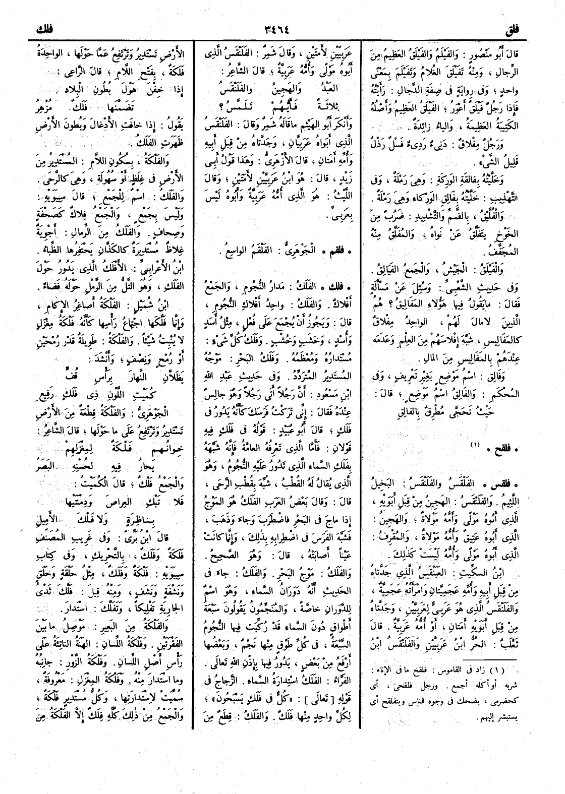 ( فلقس ) الفَلْقَسُ والفَلَنْقَس البخيل اللئيم والفَلَنْقَس الهَجِين من قِبَل أَبَوَيْه الذي أَبُوه مَوْلًى وأُمّه مَوْلاة والهَجِين الذي أَبوه عتِيق وأُمَّه مَوْلاة والمُقْرِف الذي أَبوه مَوْلًى وأُمّه ليست كذلك ابن السِّكِّيت العَبَنْقَس الذي جَدَّتاه من قِبَل أَبيه وأُمّه عجميَّتان وامرأَته عجمية والفَلَنْقَس الذي هو عربيّ لعربيّين وجدَّتاه من قِبَلِ أَبَوَيْه أَمَتان أَو أُمّه عربيّة قال ثعلب الحُرُّ ابنُ عَربيَّين والفَلَنْقَس ابن عربيّين لأَمتَيْن وقال شمر الفَلَنْقَس الذي أَبوه مولًى وأُمّه عربية قال الشاعر العَبْدُ والهَجِينُ والفَلَنْقَسُ ثلاثةٌ فأَيّهُمْ تَلَمَّسُ ؟ وأَنكر أَبو الهيثم ما قاله شمر وقال الفَلَنْقَس الذي أَبواه عربيّان وجدّتاه من قِبَل أَبيه وأُمّه أَمَتان قال الأَزهري وهذا قول أَبي زيد قال هو ابن عَرَبيّين لأَمَتين وقال الليث هو الذي أُمّه عربيَّة وأَبوه ليس بعربيّ