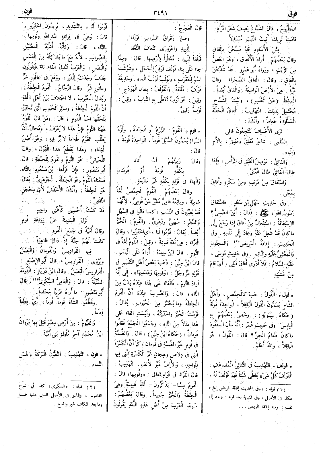 ( * قوله « وفي الحديث إفاقة المريض إلخ » هكذا في الأصل وفي النهاية بعد قوله وعاد إلى نفسه ومنه إفاقة المريض ) والمجنون والمغشي عليه والنائم وفي حديث موسى عليه السلام فلا أدري أفاقَ قَبْلي أي قام من غَشيْته ( فول ) الفُول حَبٌّ كالحِمَّص وأَهل الشام يسمون الفُول البَاقِلاًّ الواحدة فُولة حكاه سيبويه وخص بعضهم به اليابِس وفي حديث عمر أَنه سأَل المفقود ما كان طعام الجن ؟ قال الفُول هو الباقِلاًّ والله أَعلم