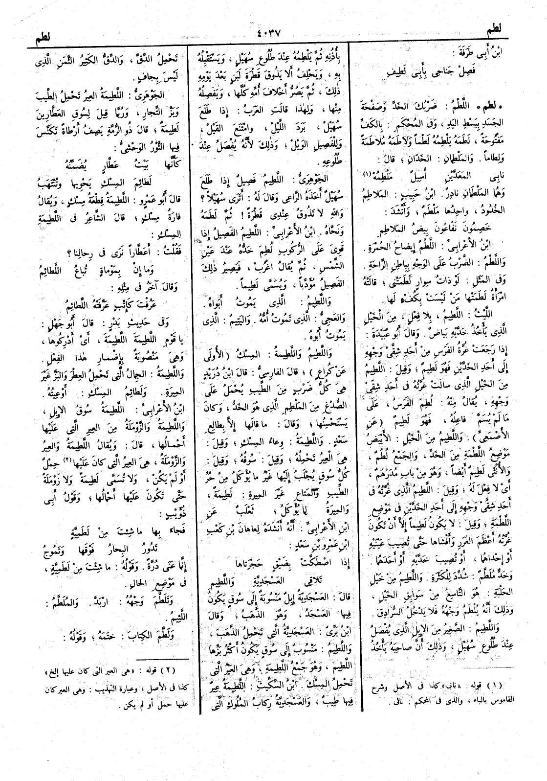( * قوله « وهي العير التي كان عليها إلخ » كذا في الأصل وعبارة التهذيب وهي العير كان عليها حمل أو لم يكن ) حِمْل أَو لم يكن ولا تسمى لَطيمةً ولا زَوْملة حتى تكون عليها أَحمالها وقول أَبي ذؤيب فجاءَ بها ما شِئتَ من لَطَمِيَّةٍ تَدُورُ البحارُ فوقَها وتَمُوجُ إِنما عنى دُرَّة وقوله ما شئت من لَطَمِيّة في موضع الحال وتَلَطَّم وجهُه ارْبَدّ والمُلَطَّم اللئيم ولَطَّم الكتاب ختَمه وقوله