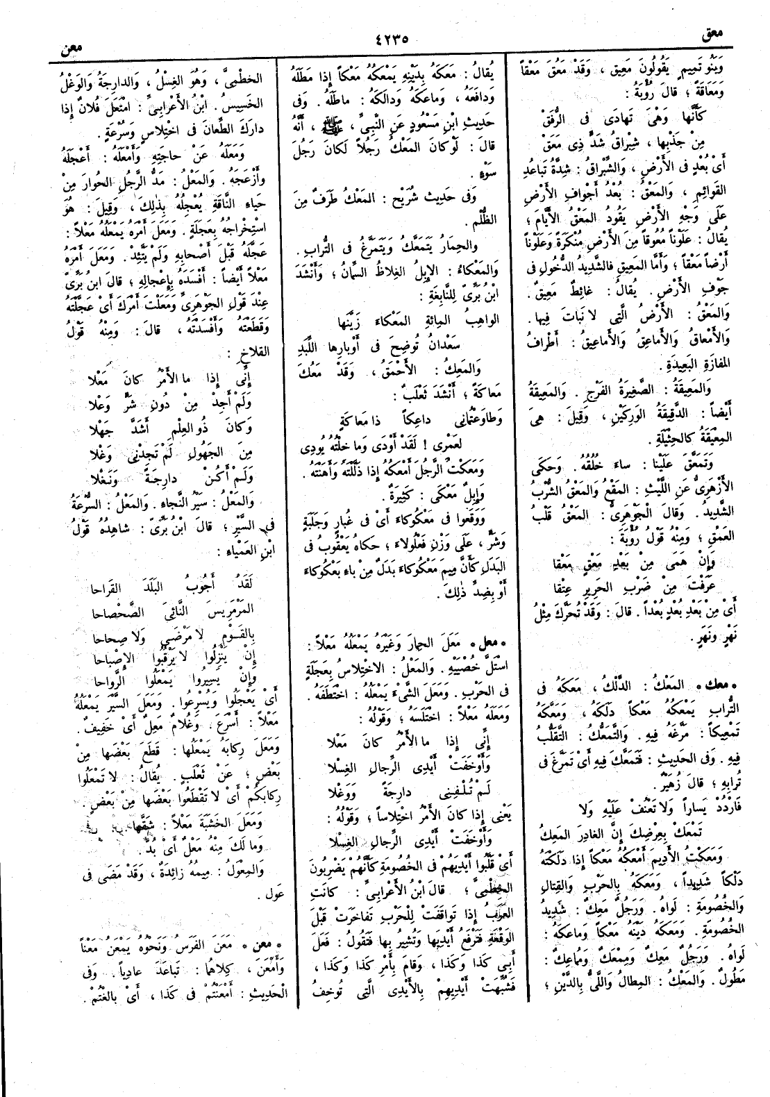 وبنو تميم يقولون مَعِيق وقد مَعُق مَعْقاً ومَعَاقةً قال رؤبة كأَنها وهي تَهادَى في الرُّفَقْ من جذبها شِبْراقُ شَدٍّ ذي مَعَقْ أَي بُعْدٍ في الأرض والشِّبراق شدَّة تباعد القوائم والمَعْقُ بُعد أجواف الأرض على وجه الأرض يقود المَعْق الأيام يقال علونا مُعُوقاً من الأرض منكَرة وعلونا مَعْقاً وأما المَعِيق فالشديد الدخول في جوف الأَرض يقال غائط مَعيق والمَعْق الأَرض التي لا نبات فيها والأَمْعاق والأَماعق والأَماعِيق أَطراف المفازة البعيدة والمَعِيقة الصغيرة الفَرْج والمَعِيقة أَيضاً الدقيقة الوَرِِكين وقيل هي المِعْيقَةَ كالِحِثْيَلة وتَمَعَّقَ علينا ساء خلقه وحكى الأزهري عن الليث المَقْع والمَعْق الشرب الشديد وقال الجوهري المَعْق قلب العَمْق ومنه قول رؤبة وإن هَمى من بعد مَعْقٍ مَعْقا عَرفْتَ من ضَرْب الحَرير عِتْقا أي من بَعْد بُعْدٍ بُعْداً قال وقد تحرك مثل نَهْر ونَهَر