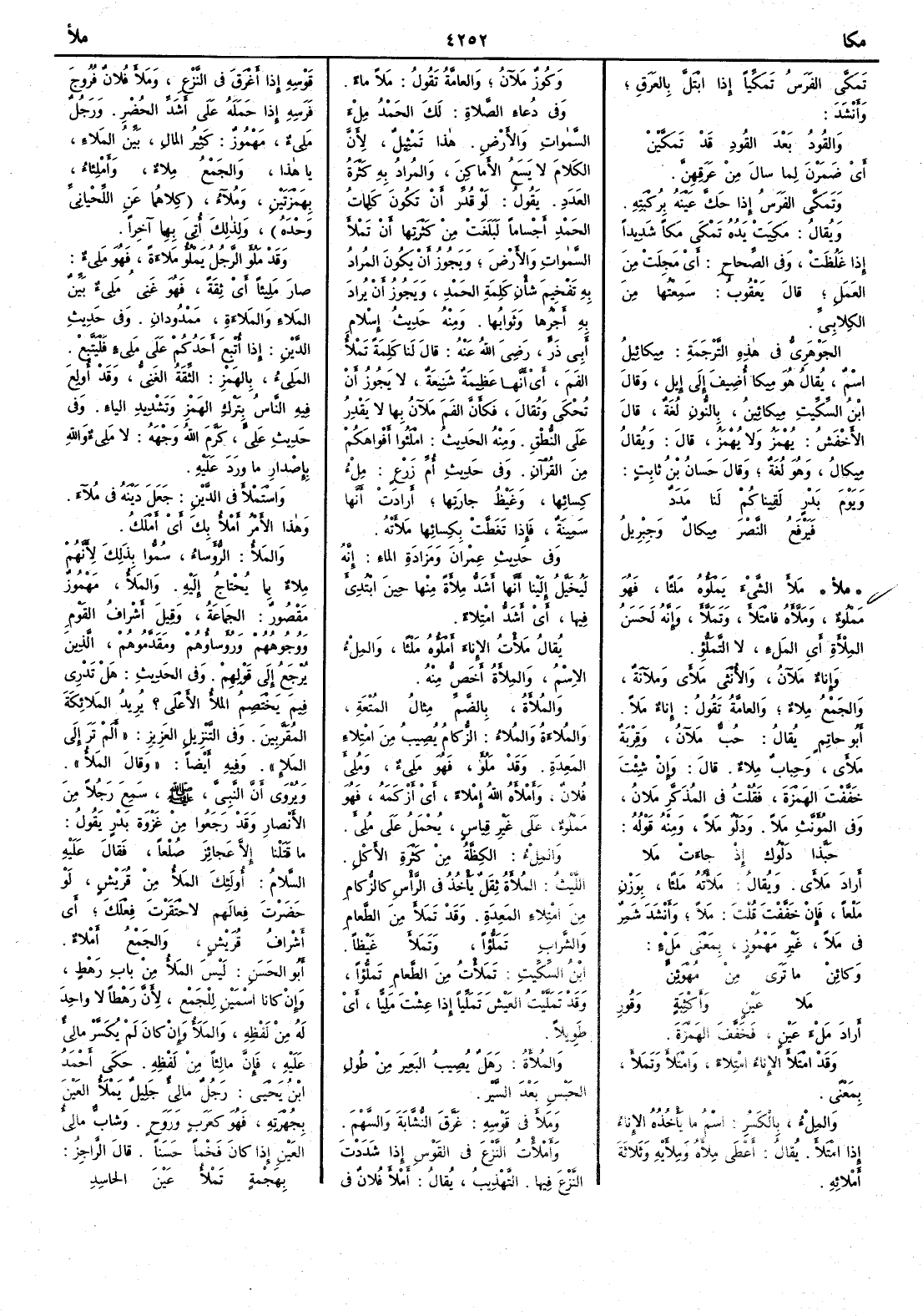 ( ملأ ) مَلأَ الشيءَ يَمْلَؤُه مَلأً فهو مَمْلُوءٌ ومَلأَه فامْتَلأَ وتَمَلأَ وإنه لَحَسَنُ المِلأَةِ أَي المَلْءِ لا التَّمَلُّؤِ وإِناءٌ مَلآنُ والأُنثى مَلأَى ومَلآنةٌ والجمع مِلاءٌ والعامة تقول إِناءٌ مَلاً أَبو حاتم يقال حُبٌّ مَلآنُ وقِرْبةٌ مَلأَى وحِبابٌ مِلاءٌ قال وإِن شئت خففت الهمزة فقلت في المذكر مَلانُ وفي المؤَنث مَلاً ودَلْوٌ مَلاً ومنه قوله حَبَّذا دَلْوُك إِذْ جاءَت مَلا أَراد مَلأَى ويقال مَلأْتُه مَلأَ بوزن مَلْعاً فإِن خففت قلت مَلاً وأَنشد شمر في مَلاً غير مهموز بمعنى مَلْءٍ