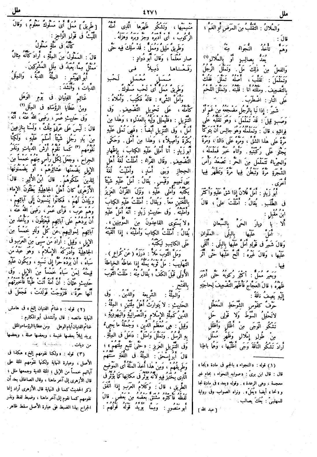 ( * قوله « ولكنا نقوّمهم إلخ » هكذا في الأصل وعبارة النهاية ولكنا نقوّمهم الملة على آبائهم خمساً من الابل الملة الدية وجمعها ملل قال الازهري الى آخر ما هنا وقال الصاغاني بعد ان ذكر الحديث كما في النهاية قال الازهري أراد إنما نقومهم كما نقوّم الى آخر ما هنا وضبط لفظ ونذر الجراح بهذا الضبط ففي عبارة الأصل سقط ظاهر ) كما نُقَوِّم أَرشَ الدِّيات ونَذَرُ الجِراحَ وجعل لكلِّ رأْسٍ منهم خمساً من الإِبل يَضْمَنُها عَشائِرُهم أَو يضمنونها للذين مَلَكوهم قال ابن الأَثير قال الأَزهري كان أَهل الجاهلية يَطَؤون الإِماءَ ويَلِدْن لهم فكانوا يُنْسَبُون إِلى آبائهم وهم عَرَب فرأَى عمر رضي الله عنه أَن يردّهم على آبائهم فَيَعْتِقون ويأْخُذ من آبائهم لِمَواليهم عن كلِّ وَلَدٍ خمساً من الإِبل وقيل أَراد مَن سُبِيَ من العرب في الجاهليَّة وأَدركه الإِسلام وهو عبد مَن سَباه أَن يردّه حرّاً إِلى نسبه ويكون عليه قيمته لِمَن سَباه خمساً من الإِبل وفي حديث عثمان أَنَّ أَمَةً أَتت طَيِّئاً فأَخبرتهم أَنها حُرَّة فتزوّجت فولَدت فجعل في