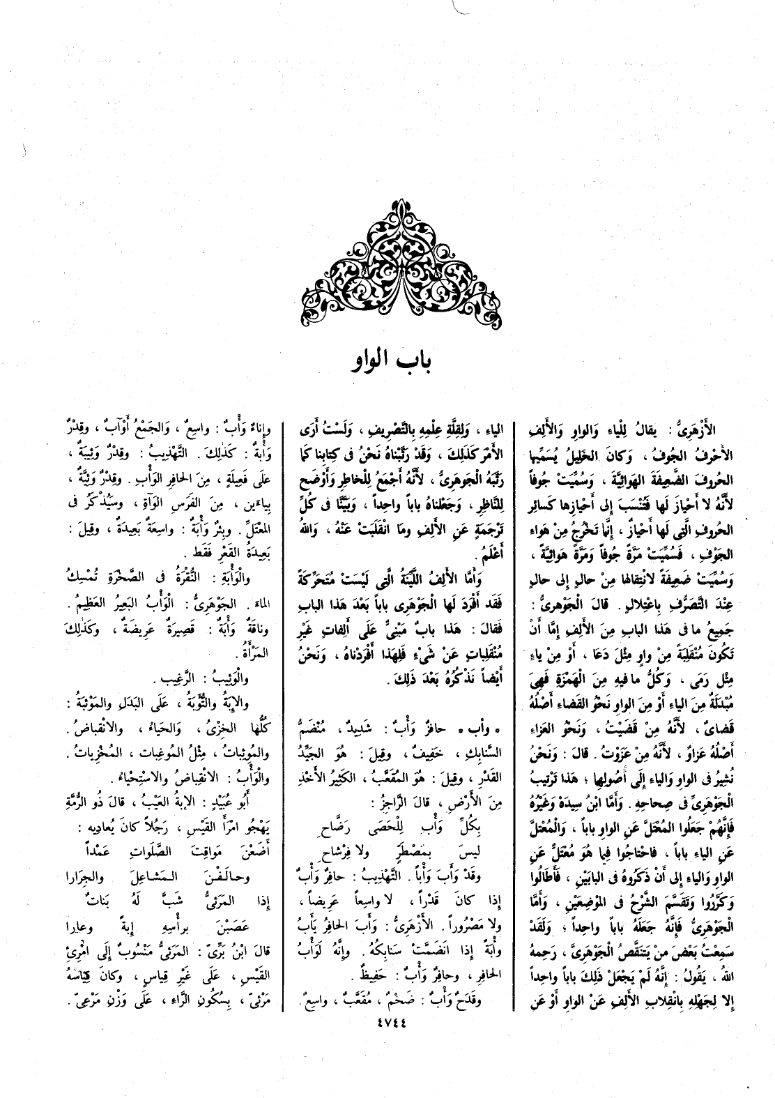 الأَزهري يقال للياء والواو والأَلفِ الأَحرفُ الجُوفُ وكان الخليل يسمِّيها الحُروف الضَّعيفةَ الهوائيَّةَ وسُمِّيتْ جُوفاً لأَنه لا أَحْيازَ لها فتُنْسَب إِلى أَحْيازها كسائر الحُروف التي لها أَحْياز إنما تخرُج من هواء الجَوف فسمِّيت مرَّةً جُوفاً ومرة هوائيَّة وسمِّيت ضعيفةً لانتقالها من حال إِلى حال عند التصرُّف باعتلال قال الجوهري جميعُ ما في هذا الباب من الأَلف إِمَّا أَن تكون منقلبةً من واو مثل دَعَا أَو من ياء مثل رَمَى وكل ما فيه من الهمزة فهي مبدلة من الياء أَو من الواو نحو القَضاء أَصله قَضايٌ لأَنه من قَضَيْت ونحو العَزاء أَصله عَزاوٌ لأَنه من عَزَوْت قال ونحن نُشِيرُ في الواو والياء إِلى أُصولهما هذا ترتيب الجوهري في صحاحه وأَما ابن سيده وغيرهُ فإِنهم جعلوا المُعْتلَّ عن الواو باباً والمعتلَّ عن الياء باباً فاحتاجوا فيما هو معتلٌّ عن الواو والياء إِلى أَن ذكروه في البابَين فأَطالوا وكَرَّروا ويقسَّم الشرحُ في الموضعين وأَما الجوهري فإِنه جعله باباً واحداً ولقد سَمِعت بعضَ مَنْ يَتنَقَّص الجوهريَّ رحمه الله يقول إِنه لم يجعل ذلك باباً واحداً إِلاّ لجهله بانقلاب الأَلف عن الواو أَو عن الياء ولقِلَّة عِلْمه بالتصريف ولستُ أَرى الأَمرَ كذلك وقد رَتَّبناه نحن في كتابنا كما رَتَّبه الجوهري لأَنه أَجمع للخاطر وأَوضح للناظر وجعلناه باباً واحداً وبيَّنَّا في كل ترجمة عن الأَلف وما انقلبتْ عنه والله أعلم وأَما الأَلف اللَّينة التي ليست متحركة فقد أَفرد لها الجوهري باباً بعد هذا الباب فقال هذا باب مبنيّ على أَلِفات غير مُنْقَلِبات عن شيء فلهذا أَفردناه ونحن أَيضاً نذكره بعد ذلك