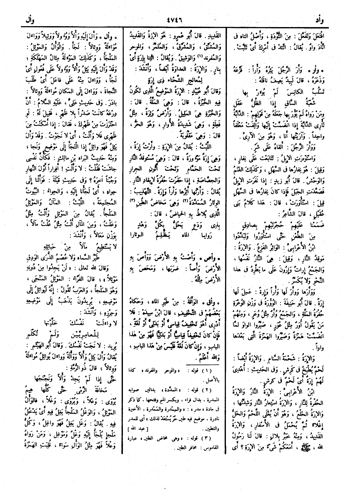 افتَعَلَ وتَفَعَّل من التُّؤدة وأَصل التاء في اتَّأَدَ واو يقال اتَّئدْ في أَمرك أَي تَثَبَّت ( وأر ) وَأَرَ الرجلَ يَئِرُه وأْراً فَزَّعَهُ وذَعَرَه قال لبيد يصف ناقته تَسْلُبُ الكانِسَ لم يُوأَرْ بها شُعْبَةُ السَّاقِ إِذا الظِّلُّ عَقَل ومن رواه لم يُؤْرَ بها جعله من قولهم الدابةُ تَأْري الدابة إِذا انضمت إِليها وأَلفت معها مَعْلَفاً واحداً وآرَيْتُها أَنا وهو من الآرِيِّ ووَأَرَ الرجلَ أَلقاه على شَرٍّ واسْتَوْأَرَتِ الإِبلُ تتابعت على نِفارٍ وقيل هو نِفارُها في السهل وكذلك الغنم والوحش قال أَبو زيد إِذا نفرت الإِبل فَصَعَّدَتِ الجَبَلَ فإِذا كان نِفارُها في السَّهْلِ قيل اسْتَأْوَرَت قال هذا كلام بني عقيل قال الشاعر ضَمَمْنا عليهم حُجْرَتَيْهِمْ بِصادِقٍ من الطَّعْنِ حتى استأْوَرُوا وتَبَدَّدُوا ابن الأَعرابي الوَائرُ الفَزِعُ والإِرَةُ مَوْقِدُ النار وقيل هي النار نفسها والجمع إِراتٌ وإِرُون على ما يَطَّرِدُ في هذا النحو ولا يُكَسَّرُ ووَأَرَها ووَأَرَ لها وَأْراً وإِرةً عمل لها إِرَةً قال أَبو حنيفة الوُؤْرةُ في وزن الوُعْرَةِ حُفْرَة المَلَّةِ والجمع وُأَرٌ مثل وُعَرٍ ومنهم من يقول أُوَرٌ مثل عُوَرٍ صَيَّرُوا الواو لما انضمت همزة وصيروا الهمزة التي بعدها واواً والإِرَةُ شحمة السَّنام والإِرَةُ أَيضاً لحم يطبخ في كرش وفي الحديث أُهْدِيَ لهم إِرَةٌ أَي لحم في كرش ابن الأَعرابي الإِرَةُ النار والإِرَةُ الحُفْرة للنار والإِرَةُ اسْتِعارُ النار وشدَّتها والإِرَةُ الخَلْعُ وهو أَن يُغْلَى اللحم والخل إِغلاءً ثم يحمل في الأَسفار والإِرَةُ القَدِيدُ ومنه خبر بلال قال لنا رسول الله صلى الله عليه وسلم أَمعكم شيءٌ من الإِرَةِ أَي القديد قال أَبو عمرو هو الإِرَةُ والقَدِيدُ والمُشَنَّقُ والمُشَرَّقُ والمُتَمَّرُ والموحر والمفرند