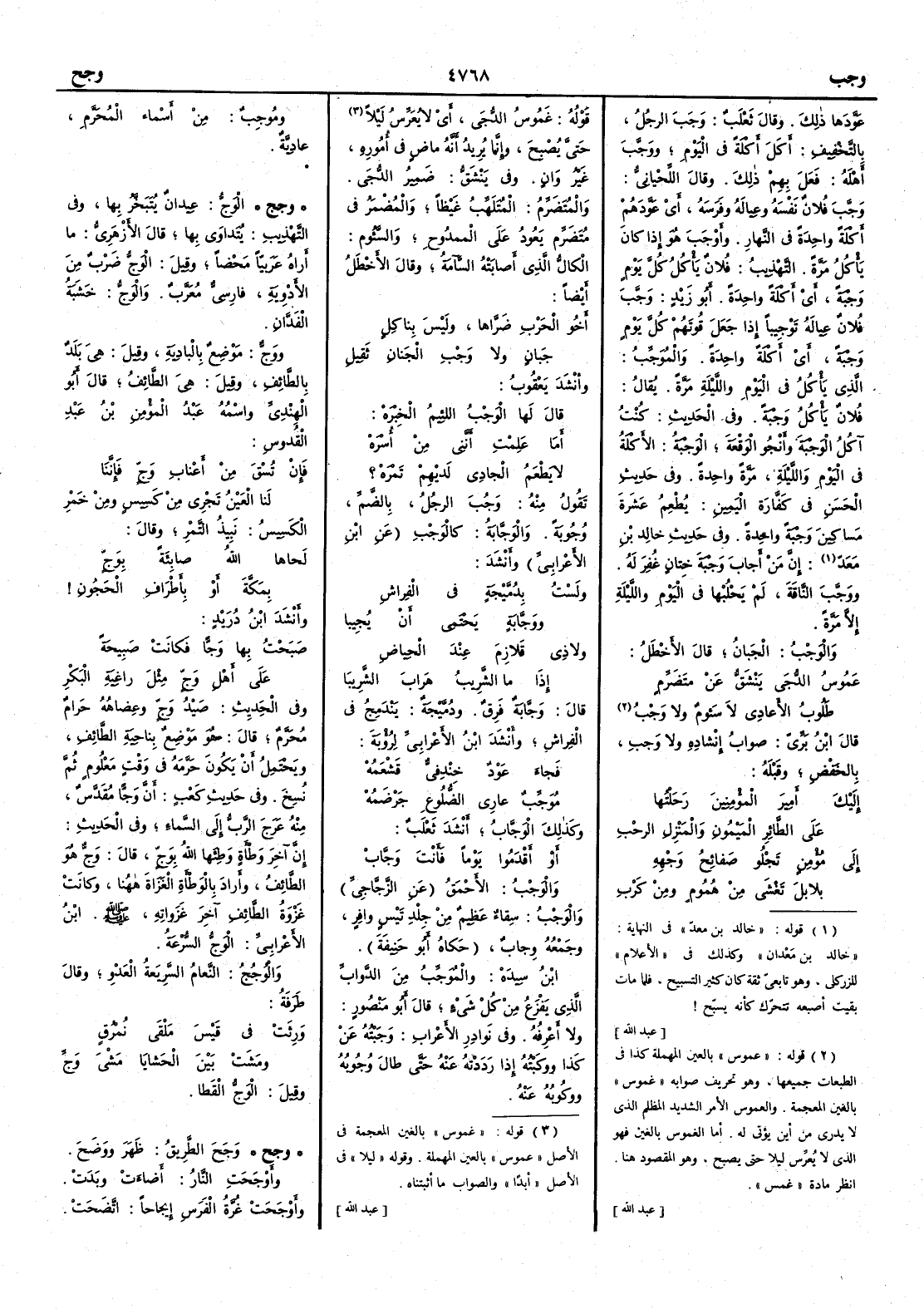 وكذلك الوَجَّابُ أَنشد ثعلب أَو أَقْدَمُوا يوماً فأَنتَ وَجَّابْ [ ص 796 ] والوَجْبُ الأَحْمَقُ عن الزجاجي والوَجْبُ سِقاءٌ عظيم من جلْد تَيْسٍ وافرٍ وجمعه وِجابٌ حكاه أَبو حنيفة ابن سيده والمُوَجِّبُ من الدَّوابِّ الذي يفْزَعُ من كل شيءٍ قال أَبو منصور ولا أَعرفه وفي نوادر الأَعراب وَجَبْتُه عن كذا ووكَبْتُه إِذا رَدَدْتُه عنه حتى طالَ وُجُوبُه ووكُوبُه عنه ومُوجِبٌ من أَسماءِ المُحَرَّم عادِيَّةٌ