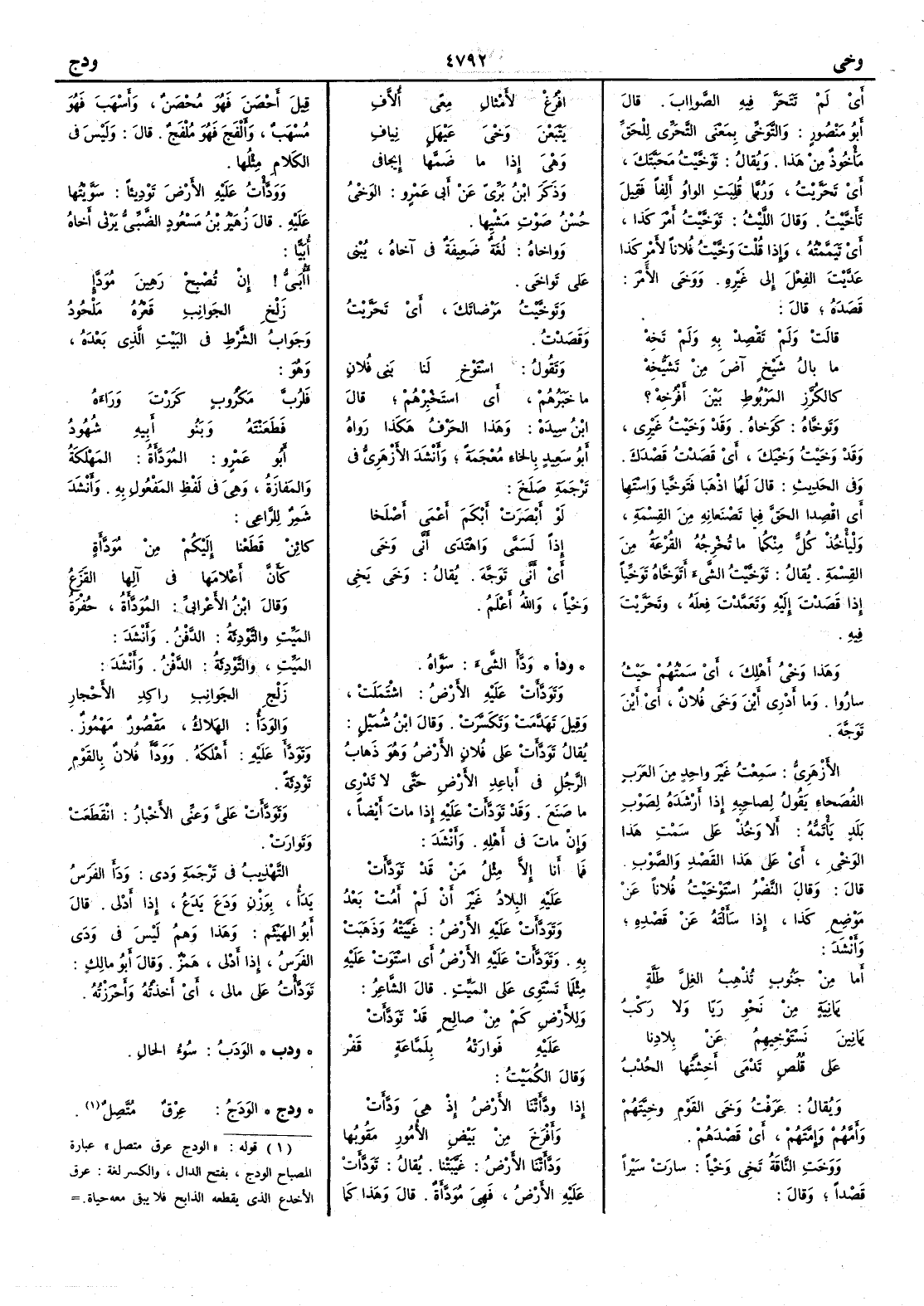 ( ودأ ) وَدَّأَ الشيءَ سَوّاه وتَوَدَّأَتْ عليه الأَرضُ اشتملت وقيل تَهَدَّمت وتَكَسَّرت وقال ابن شميل يقال تَوَدَّأَتْ على فلان الأَرضُ وهو ذَهابُ الرَّجلِ في أَباعد الأَرضِ حتى [ ص 192 ] لا تَدْرِي ما صنَعَ وقد تَوَدَّأَتْ عليه إِذا ماتَ أَيضاً وإِن ماتَ في أَهْلِه وأَنشد