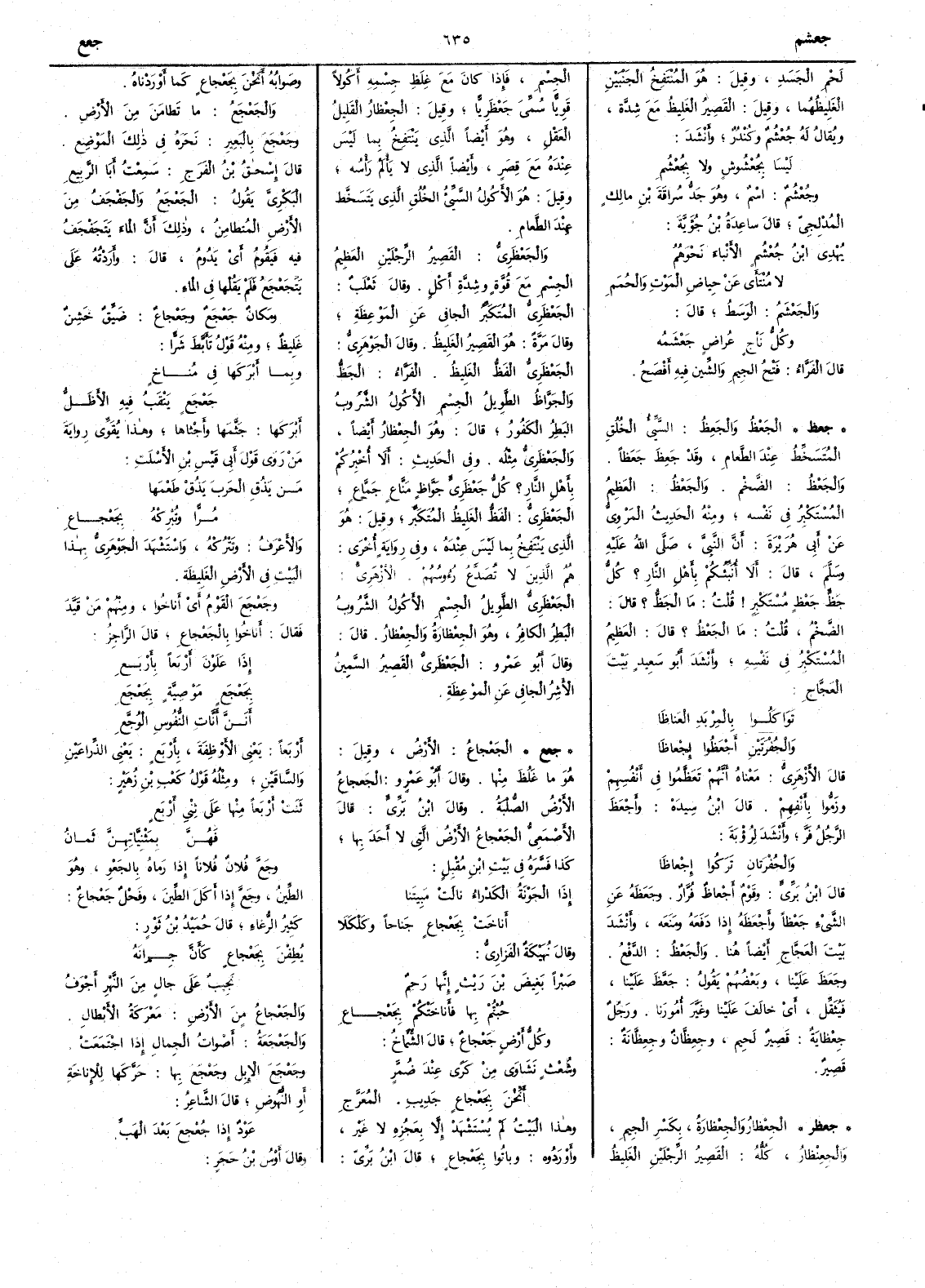 ( جعع ) الجَعْجاعُ الأَرض وقيل هو ما غَلُظَ منه وقال أَبو عمرو الجَعْجاع الأَرض الصُّلْبة وقال ابن بري قال الأَصمعي الجَعْجاع الأَرض التي لا أَحد بها كذا فسره في بيت ابن مقبل إِذا الجَوْنةُ الكدْراء نالَتِ مَبِيتَنا أَناخَتْ بجَعْجاعٍ جَناحاً وكَلْكَلا وقال نُهَيْكةُ الفزاري صَبْراً بَغِيضَ بن رَيْثٍ إِنها رَحِمٌ حُبْتُمْ فأَناخَتْكم بجَعْجاعِ وكلُّ أَرض جَعْجاعٌ قال الشماخ وشُعْثٍ نَشاوى من كَرًى عند ضُمَّرٍ أَنَخْنَ بجَعْجاعٍ جَدِيبِ المُعَرَّجِ وهذا البيت لم يُستَشْهد إلاَّ بعَجُزه لا غير وأَوردوه وباتوا بجَعْجاع قال ابن بري وصوابه أَنخْن بجعجاع كما أَوردناه والجَعْجَعُ ما تَطامَنَ من الأَرض وجَعْجَعَ بالبعير نَحَرَه في ذلك الموضع قال إِسحق بن الفَرَج سمعت أَبا الربيع البكْرِيّ يقول الجَعْجَعُ والجَفْجَفُ من الأَرض المُتطامِنُ وذلك أَن الماء يَتَجَفْجَف فيه فيقوم أَي يَدُوم قال وأَرَدْتُه على يَتَجَعْجع فلم يقلها في الماء ومكانٌ جَعْجَعٌ وجَعْجاعٌ ضَيّق خَشِن غَلِيظ ومنه قول تأَبّط شرًّا وبما أَبْرَكَها في مُناخٍ جَعْجَعٍ يَنْقَبُ فيه الأَظَلُّ أَبركها جَثَّمها وأَجْثاها وهذا يقوِّي رواية من روى قول أَبي قيْس بن الأَسْلَتِ مَن يَذُقِ الحَرْب يَذُقْ طَعْمَها مُرًّا وتُبْرِكْه بجَعْجاعِ والأَعرف وتَتْرُكْه واستشهد الجوهري بهذا البيت في الأَرض الغليظة وجَعْجَعَ القومُ أَي أَناخوا ومنهم من قَيَّد فقال أَناخوا بالجَعْجاع قال الراجز إِذا عَلَوْنَ أَرْبَعاً بأَرْبَعِ بجَعْجَعٍ مَوْصِيَّةٍ بجَعْجَعِ أَنَنَّ أَنَّاتِ النُّفوسِ الوُجَّعِ أَربعاً يعني الأَوْظِفةَ بأَربع يعني الذِّراعَين والساقين ومثله قول كعب بن زهير ثَنَتْ أَرْبَعاً منها على ثِنْي أَرْبَعٍ فهُنَّ بمَثْنِيّاتِهنَّ ثَمان وجَعَّ فلان فلاناً إِذا رَماه بالجَعْوِ وهو الطِّينُ وجَعَّ إِذا أَكل الطين وفَحْل جَعْجاع كثيرُ الرُّغاء قال حُمَيْد بن ثَور يُطِفْنَ بجَعْجاعٍ كأَن جِرانَه نَجِيبٌ على جالٍ من النهْر أَجْوَف والجَعْجاع من الأَرض مَعْرَكةُ الأَبطال والجَعْجعةُ أَصوات الجمال إِذا اجتمعت وجَعْجَعَ الإِبلَ وجَعْجَعَ بها حرَّكها للإِناخة أَو النُّهوض قال الشاعر عَوْد إِذا جُعْجِعَ بعدَ الهَبِّ وقال أَوْسُ بن حَجَر