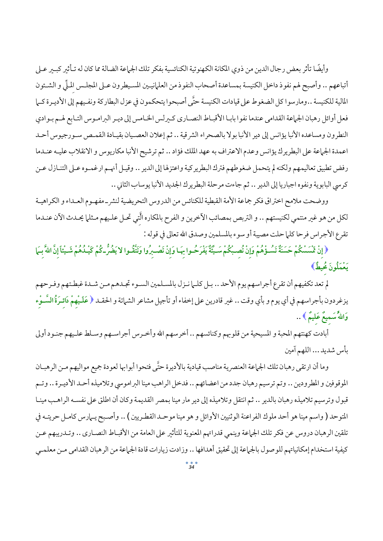 {إِنْ تَمْسَسْكُمْ حَسَنَةٌ تَسُؤْهُمْ وَإِنْ تُصِبْكُمْ سَيِّئَةٌ يَفْرَحُوا بِهَا وَإِنْ تَصْبِرُوا وَتَتَّقُوا لا يَضُرُّكُمْ كَيْدُهُمْ شَيْئاً إِنَّ اللَّهَ بِمَا يَعْمَلُونَ مُحِيطٌ}
