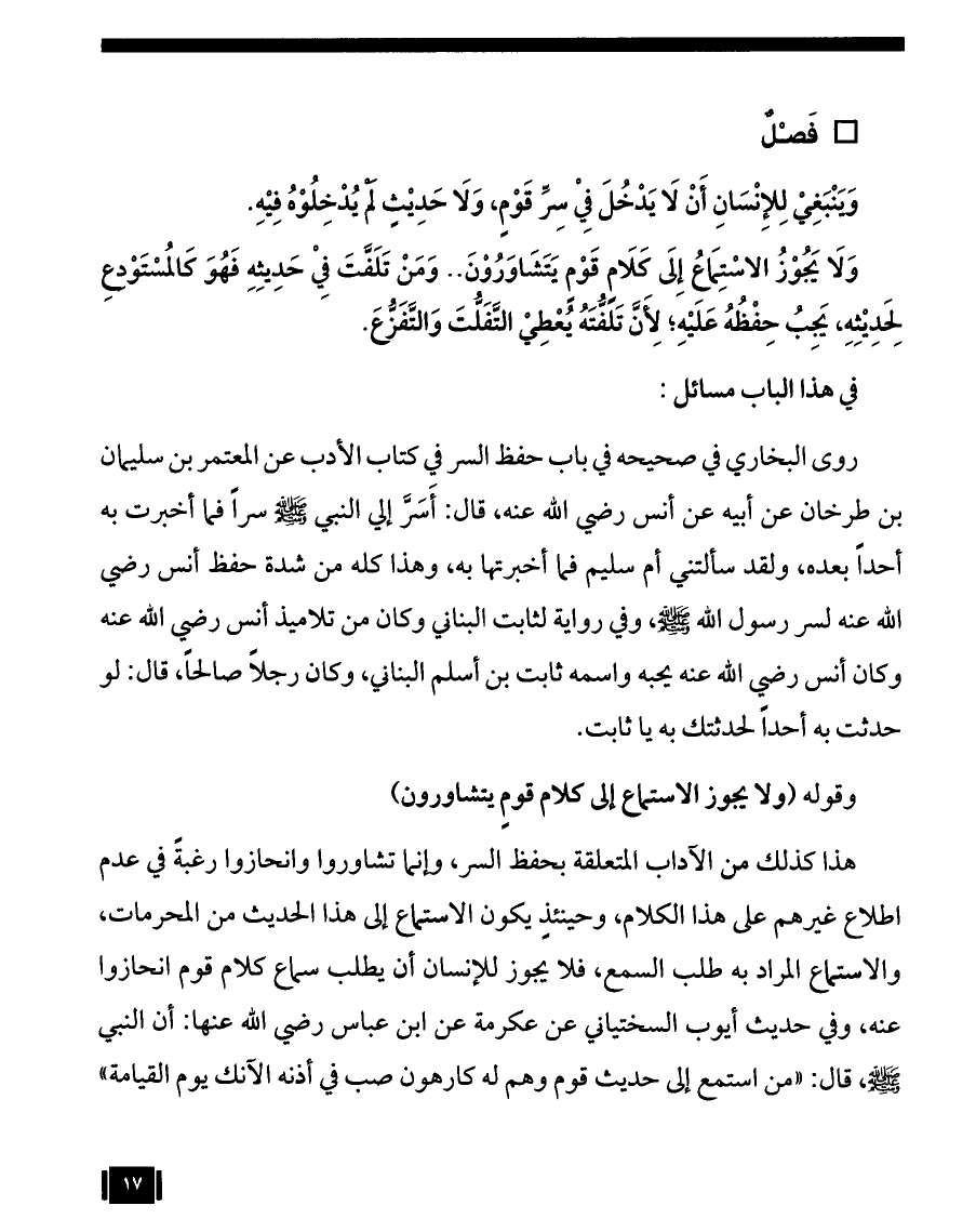 وقوله: (ولا يجوز الاستماع إلى كلام قومٍ يتشاورون).