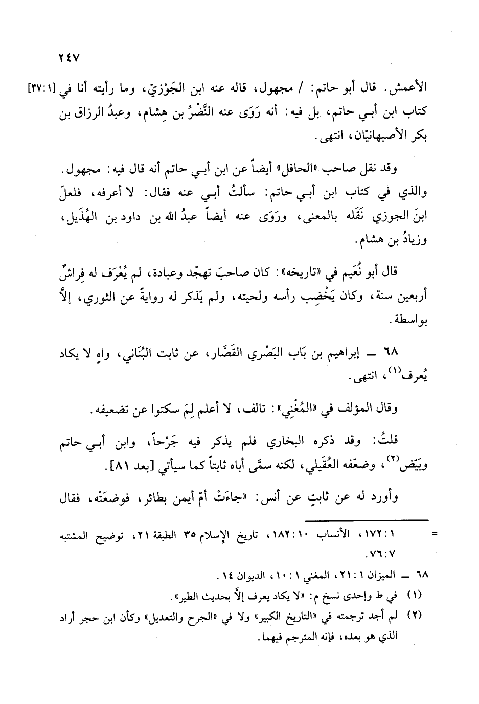 قلت: وقد ذكره البخاري فلم يذكر فيه جرحا، وَابن أبي حاتم وبيض وضعفه العقيلي لكنه سمى أباه ثابتا كما سيأتي (بعد 81).