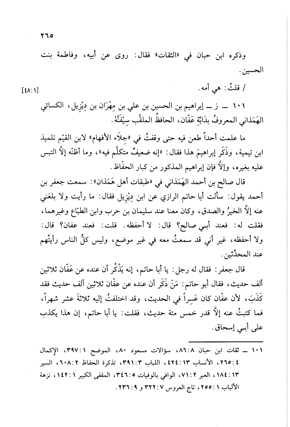 101 - (ز): إبراهيم بن الحسين بن علي بن مهران بن ديزيل الكسائي الهمذاني المعروف بدابة عفان الحافظ الملقب سيفنة.