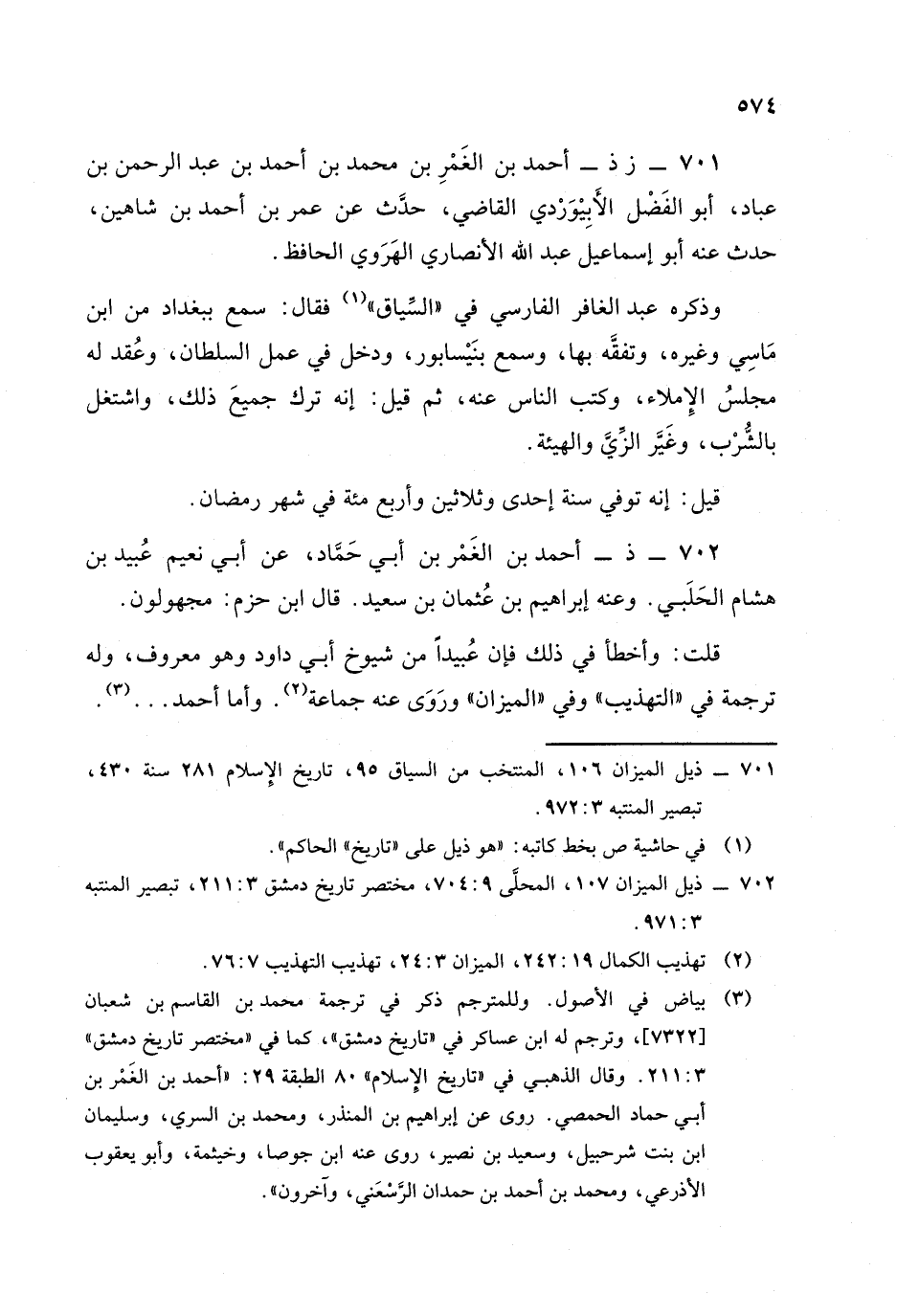 701 - ز ذ - أحمد بن الغمر بن محمد بن أحمد بن عبد الرحمن بن عباد أبو الفضل الأبيوردي القاضي.