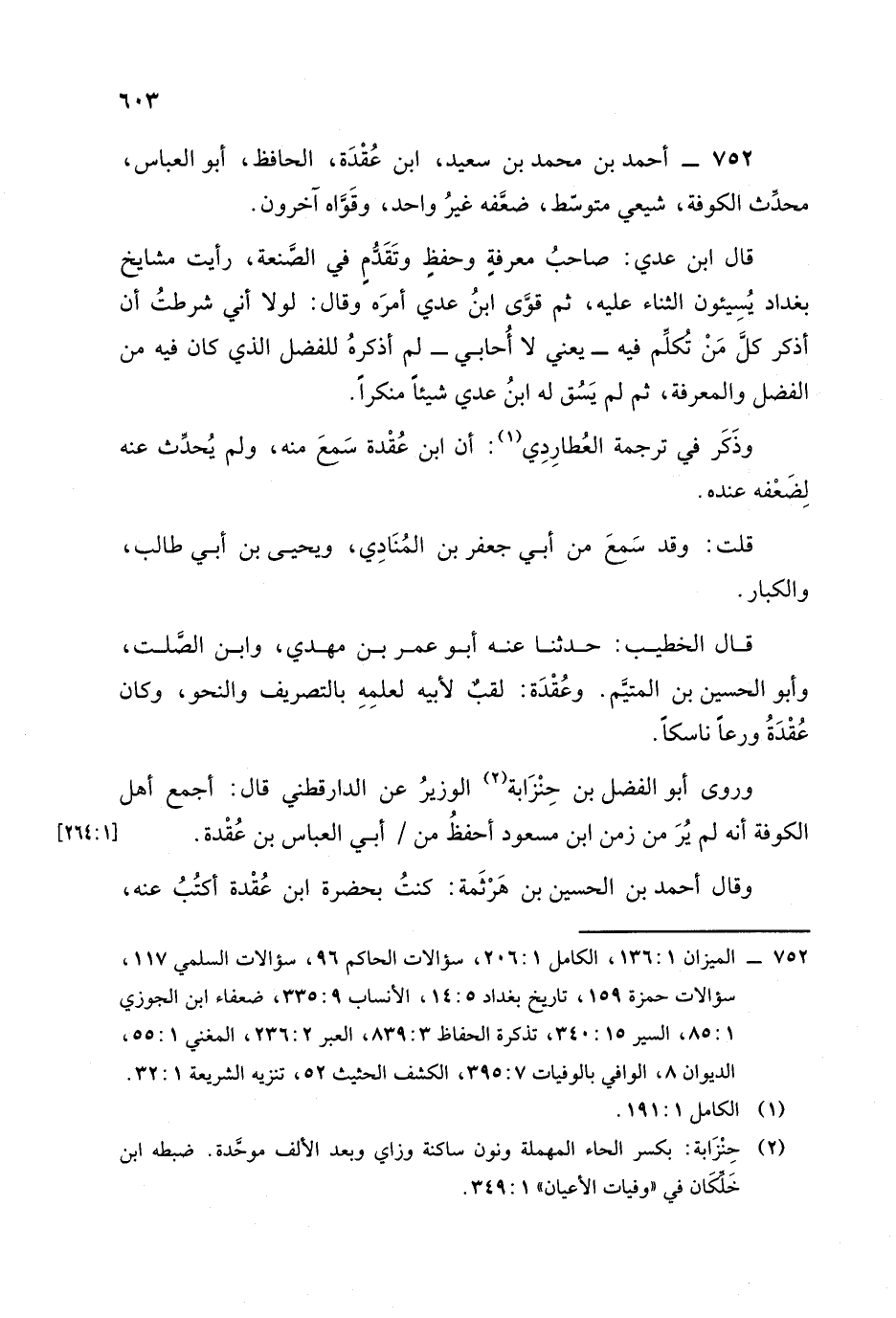 قال ابن عَدِي: وقد كان ابن عقدة من الحفظ والمعرفة بمكان.