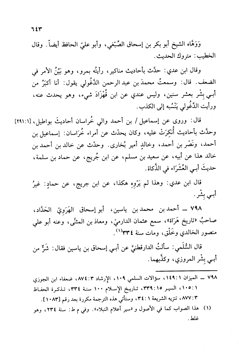 798 - أحمد بن محمد بن ياسين أبو إسحاق الهروي الحداد.
