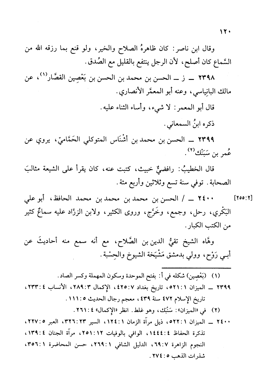 2398 - (ز): الحسن بن محمد بن الحسن بن بعصين القصار.
