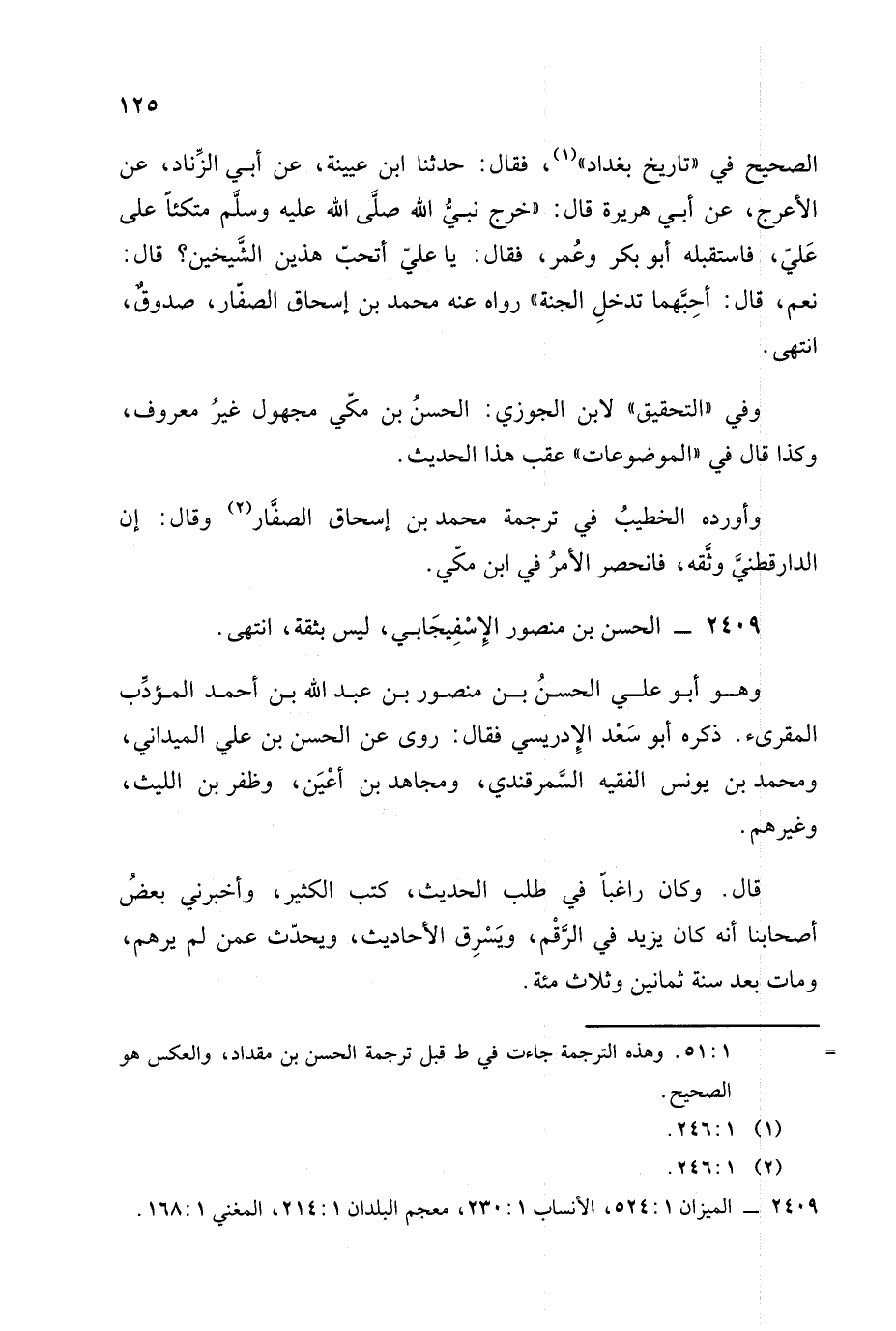 2409 - الحسن بن منصور [بن عبد الله بن أحمد المؤدب المقرىء أبو علي] الإسفيجابي.