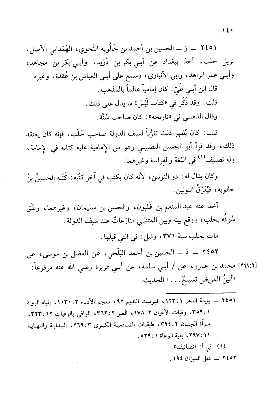2451 - (ز): الحسين بن أحمد بن خالويه النحوي الهمذاني الأصل نزيل حلب.