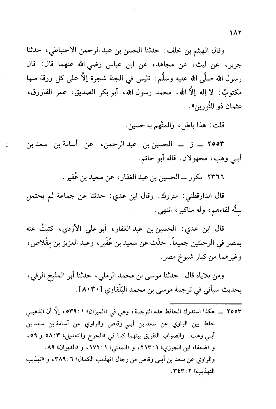 2366مكرر- الحسين بن عبد الغفار [بن عَمْرو أبو علي الأزدي، ويقال عن الحسن بن غفير المصري العطار أنه هو]