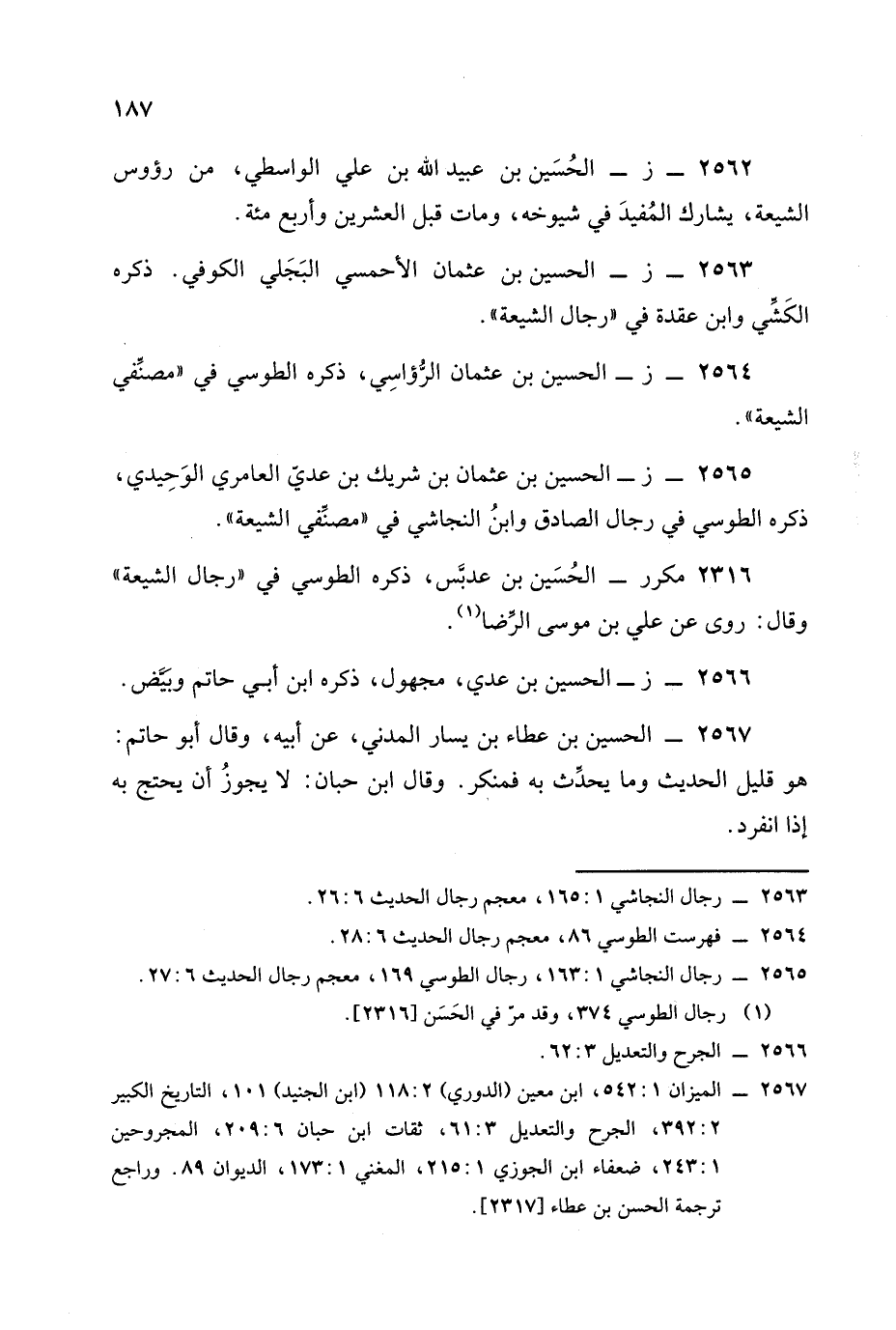 2565 - (ز): الحسين بن عثمان بن شريك بن عَدِي العامري الوحيدي.
