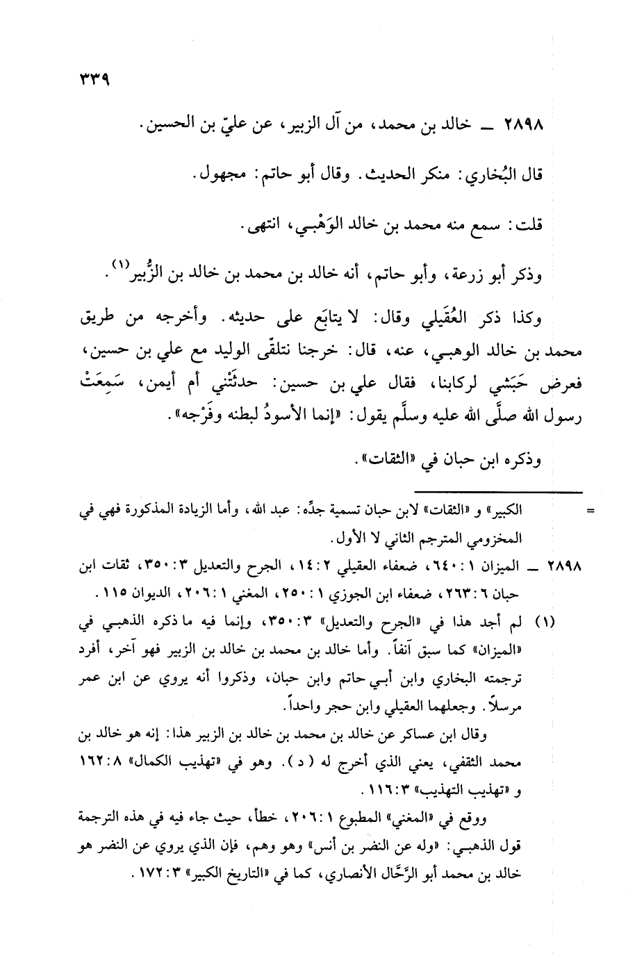 وذكر أبو زرعة وأبو حاتم أنه خالد بن محمد بن خالد بن الزبير.