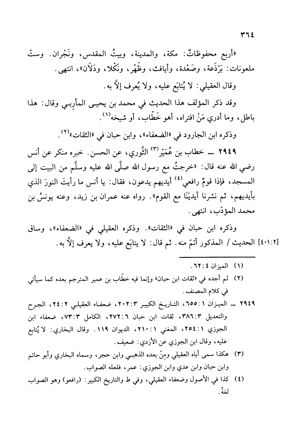 خبره منكر، عَن أَنس رضي الله عنه قال: خرجت مع رسول الله صَلَّى الله عَلَيْهِ وَسَلَّمَ من البيت إلى المسجد فإذا قوم رافعي أيديهم يدعون , فقال: يا أنس ما رأيت النور الذي بأيديهم ثم نشرنا أيدينا مع القوم.