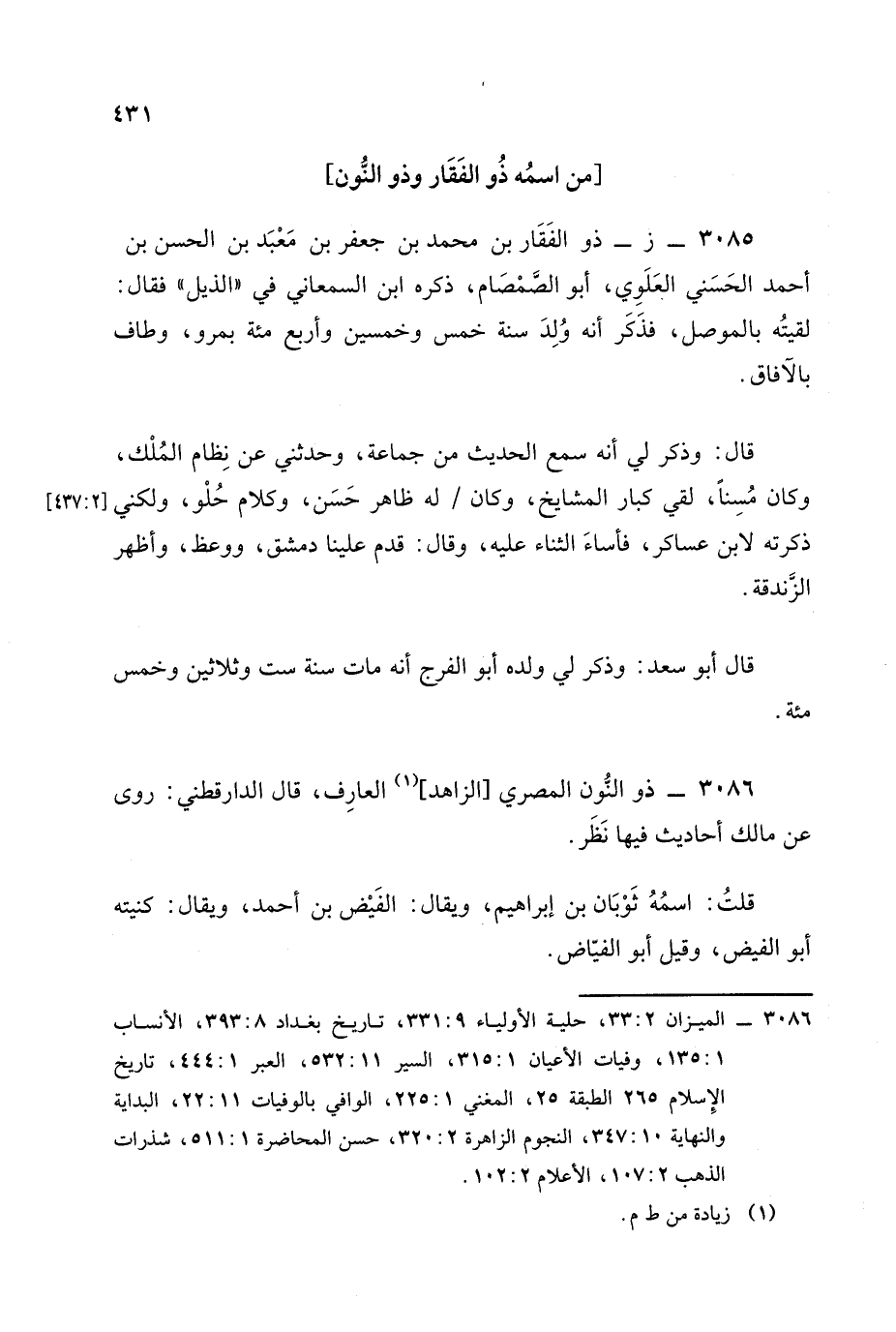 3086 - ذو النون المصري الزاهد العارف [أَبُو الفيض وقيل: أبو الفياض]