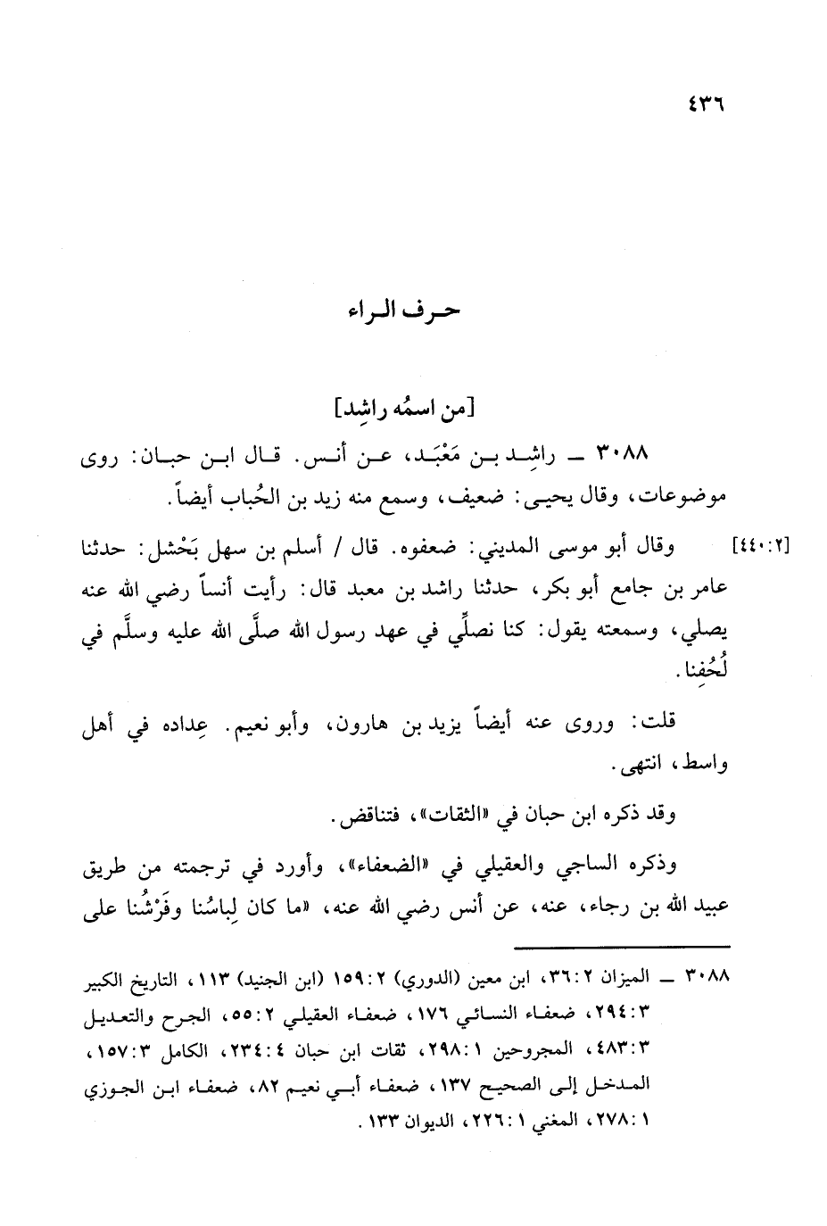 قال أسلم بن سهل بحشل: حَدَّثَنَا عامر بن جامع أبو بكر , حَدَّثَنَا راشد بن معبد قال: رأيت أنسا رضي الله عنه يصلي وسمعته يقول: كنا نصلي في عهد رسول الله صَلَّى الله عَلَيْهِ وَسَلَّمَ في لحفنا.