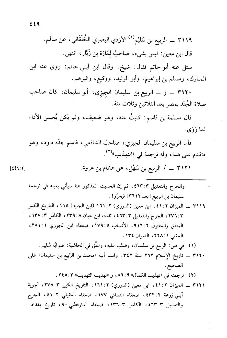 3119 - الربيع بن سليم الأزدي البصري الخلقاني.