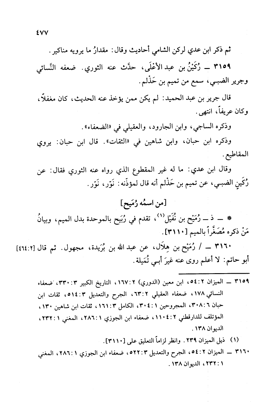 وقال ابن عَدِي: ما له غير المقطوع الذي رواه عنه الثوري فقال: عن ركين الضبي عن تميم بن حذلم أنه قال لمؤذنه نور نور.