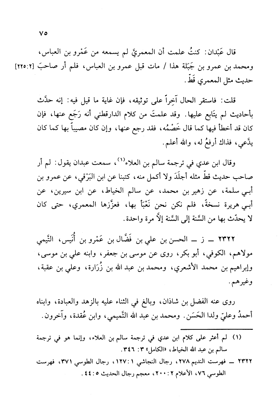 2322 - (ز): الحسن بن علي بن فضال بن عَمْرو بن أنيس التيمي مولاهم الكوفي أبو بكر.