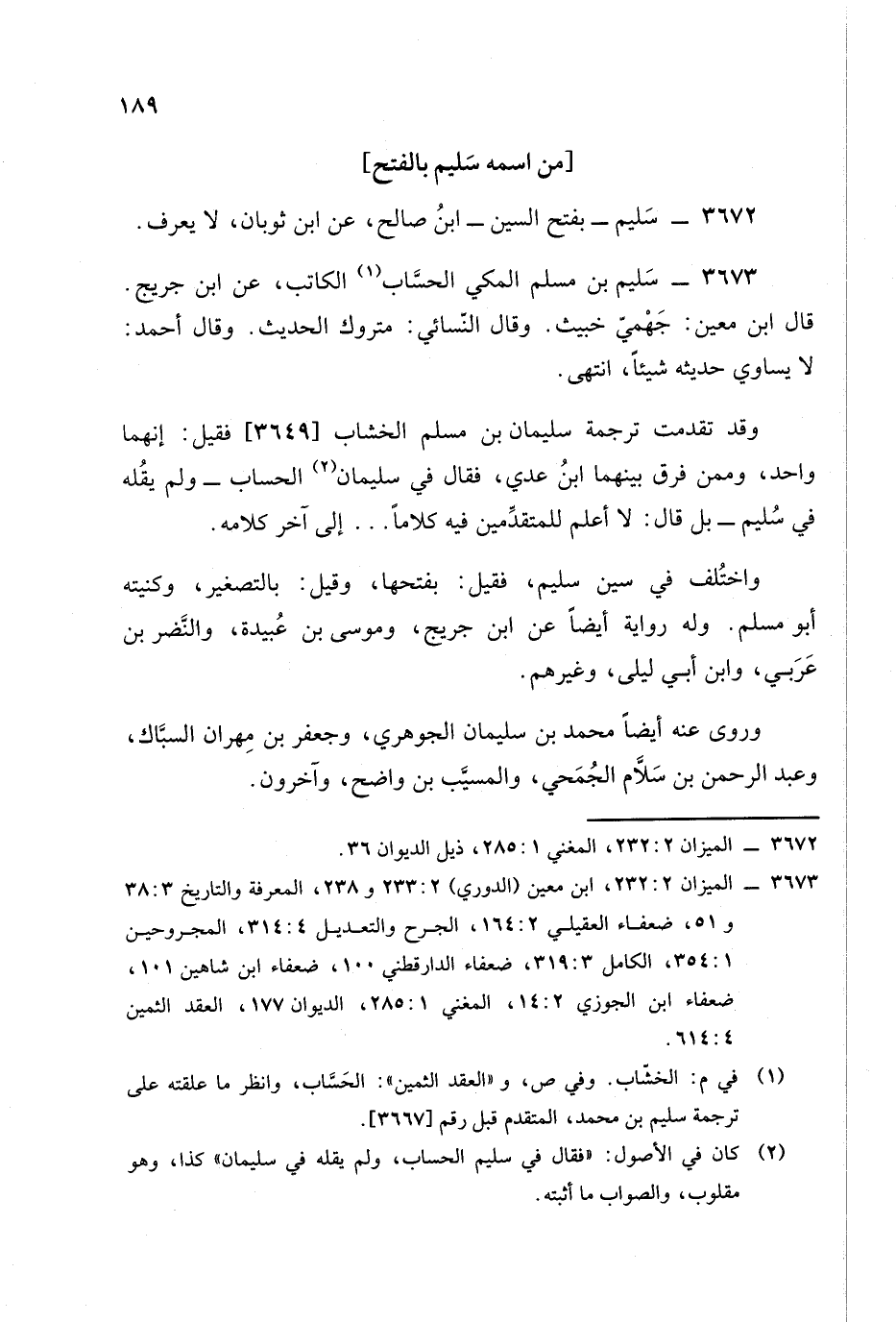وقد تقدمت ترجمة سليمان بن مسلم الخشاب (3649) فقيل: إنهما واحد وممن فرق بينهما ابن عَدِي فقال في سليمان الحساب - ولم يقله في سليم - بل قال: لا أعلم للمتقدمين فيه كلاما ... إلى آخر كلامه.