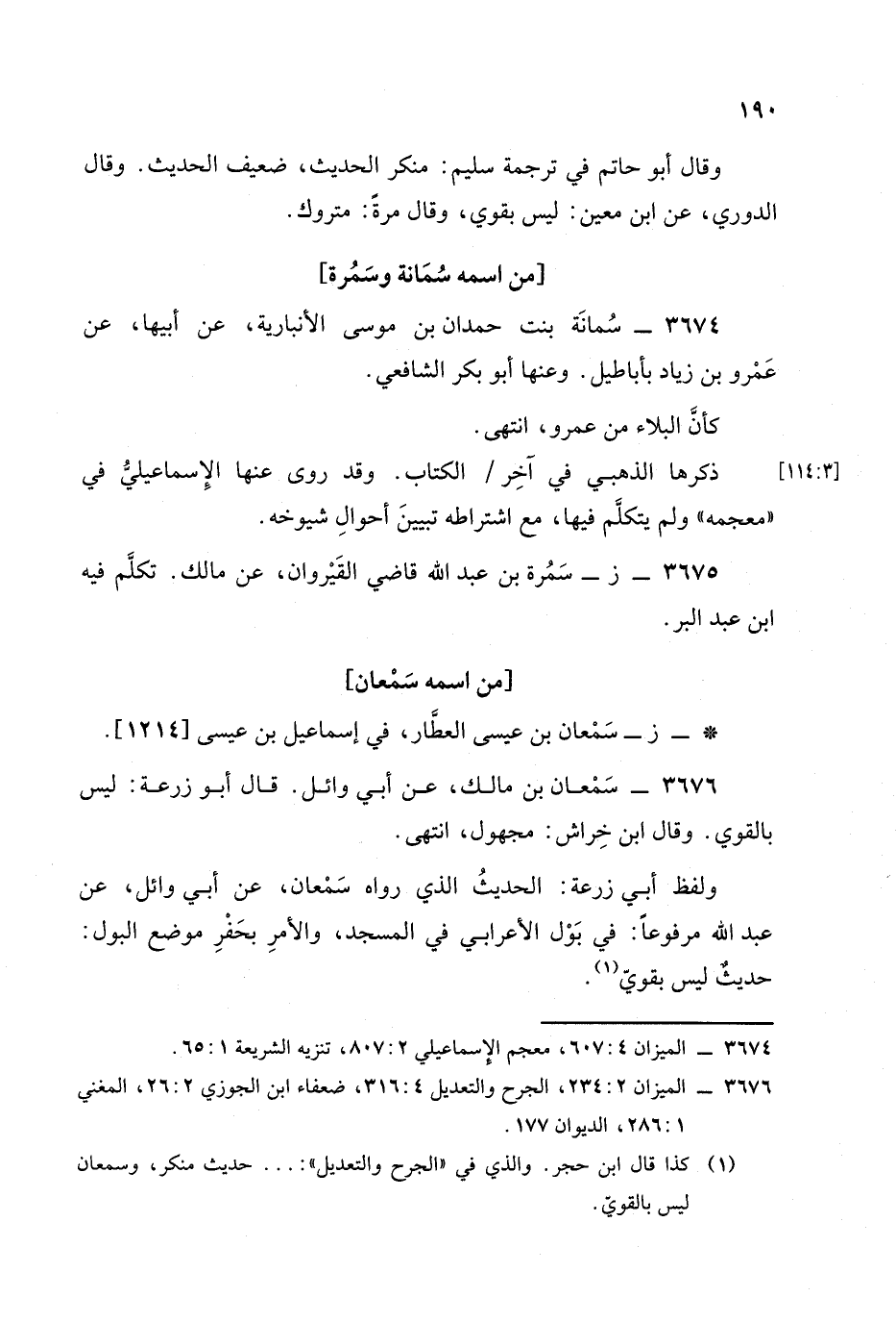 ولفظ أبي زرعة: الحديث الذي رواه سمعان، عَن أبي وائل، عَن عَبد الله مرفوعا في بول الأعرابي في المسجد والأمر بحفر موضع البول حديث ليس بقوي. -[191]-