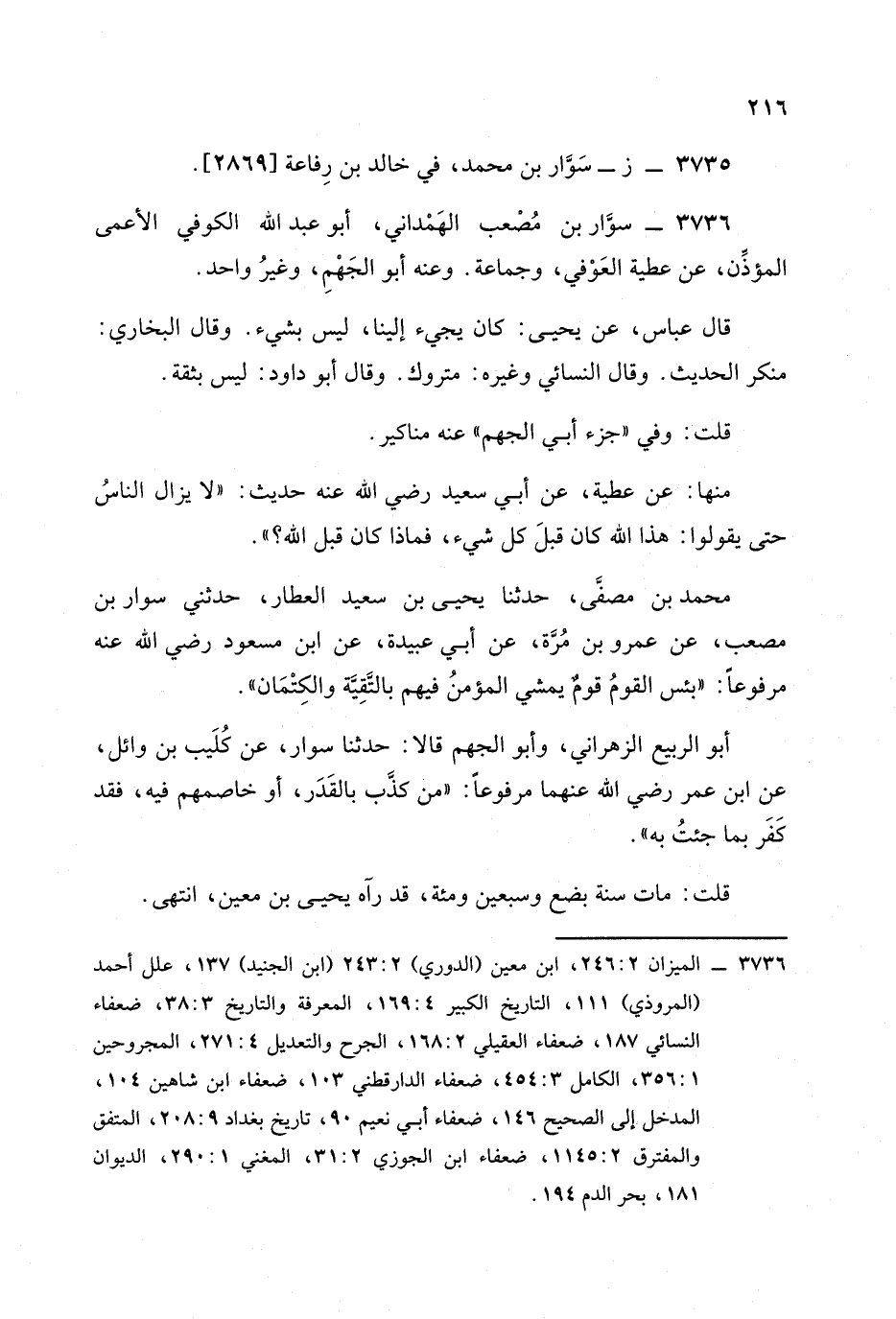 وقد وقع في كتاب العقيلي في عزو الحديث المذكور وهم بينته في ترجمة الذي قبله قريبا سوار بن عبد الله (3732).