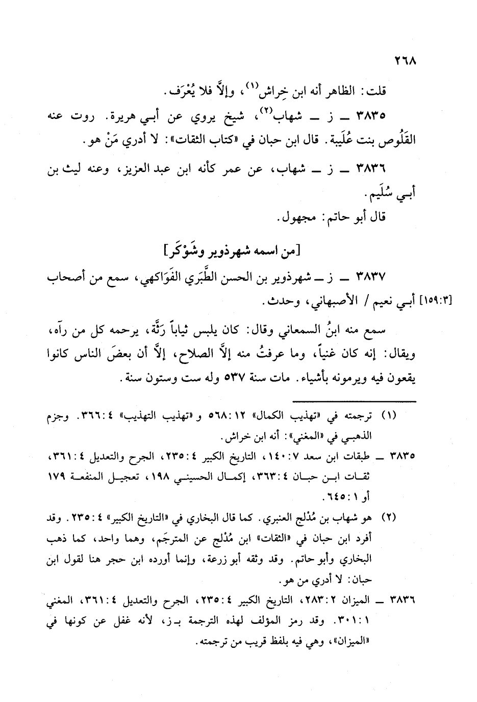 3837 - (ز): شهرذوير بن الحسن الطبري الفواكهي.